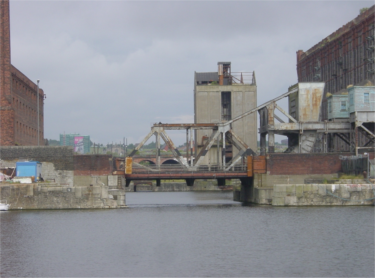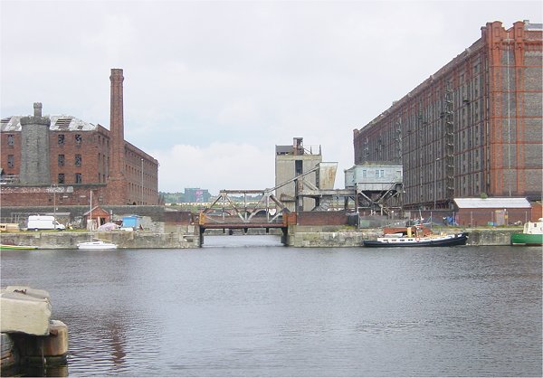 Dock and the teeny weeny hole in the wall, where the Stanley Dock Locks start behind. The only swing bridge across the upper docks was swung by