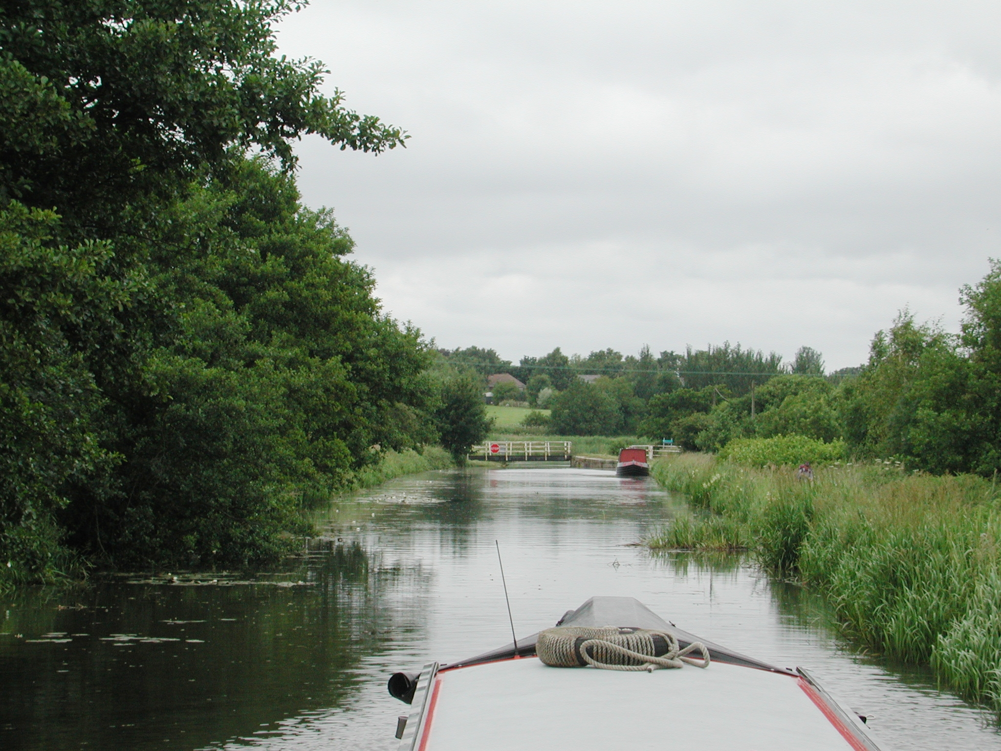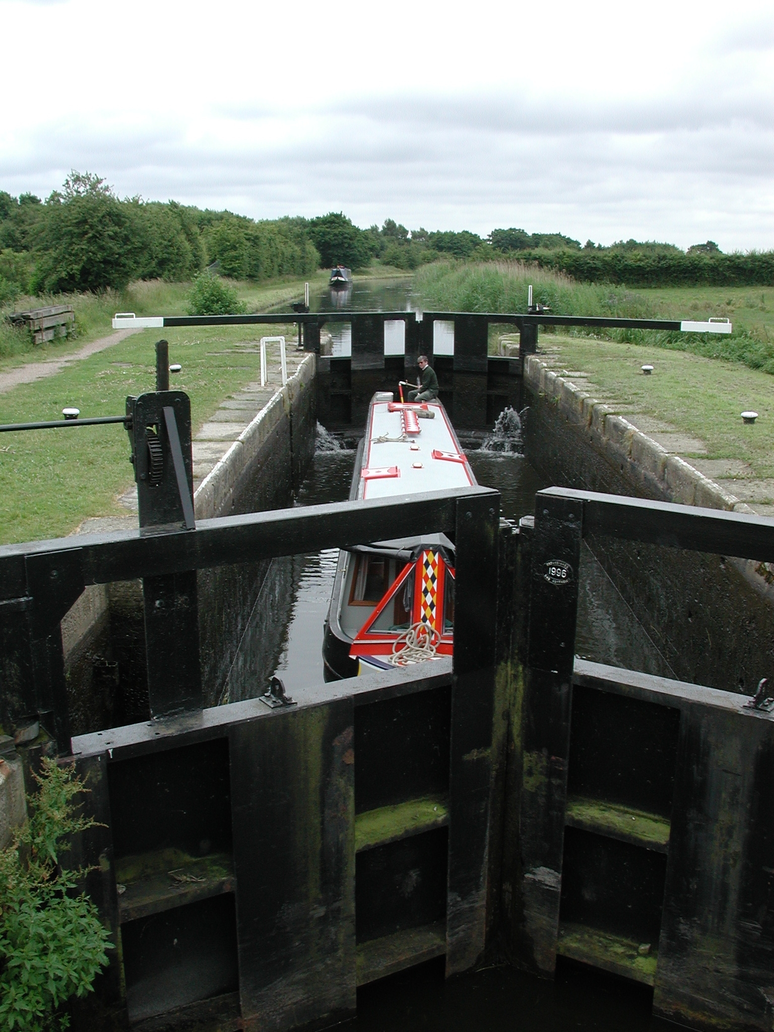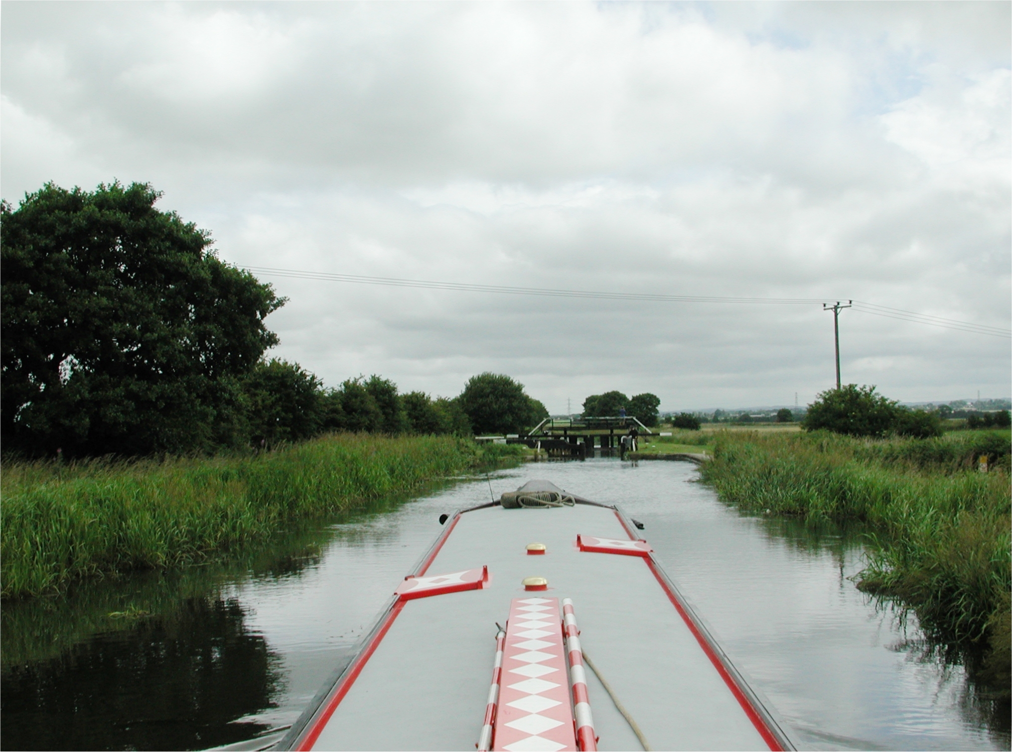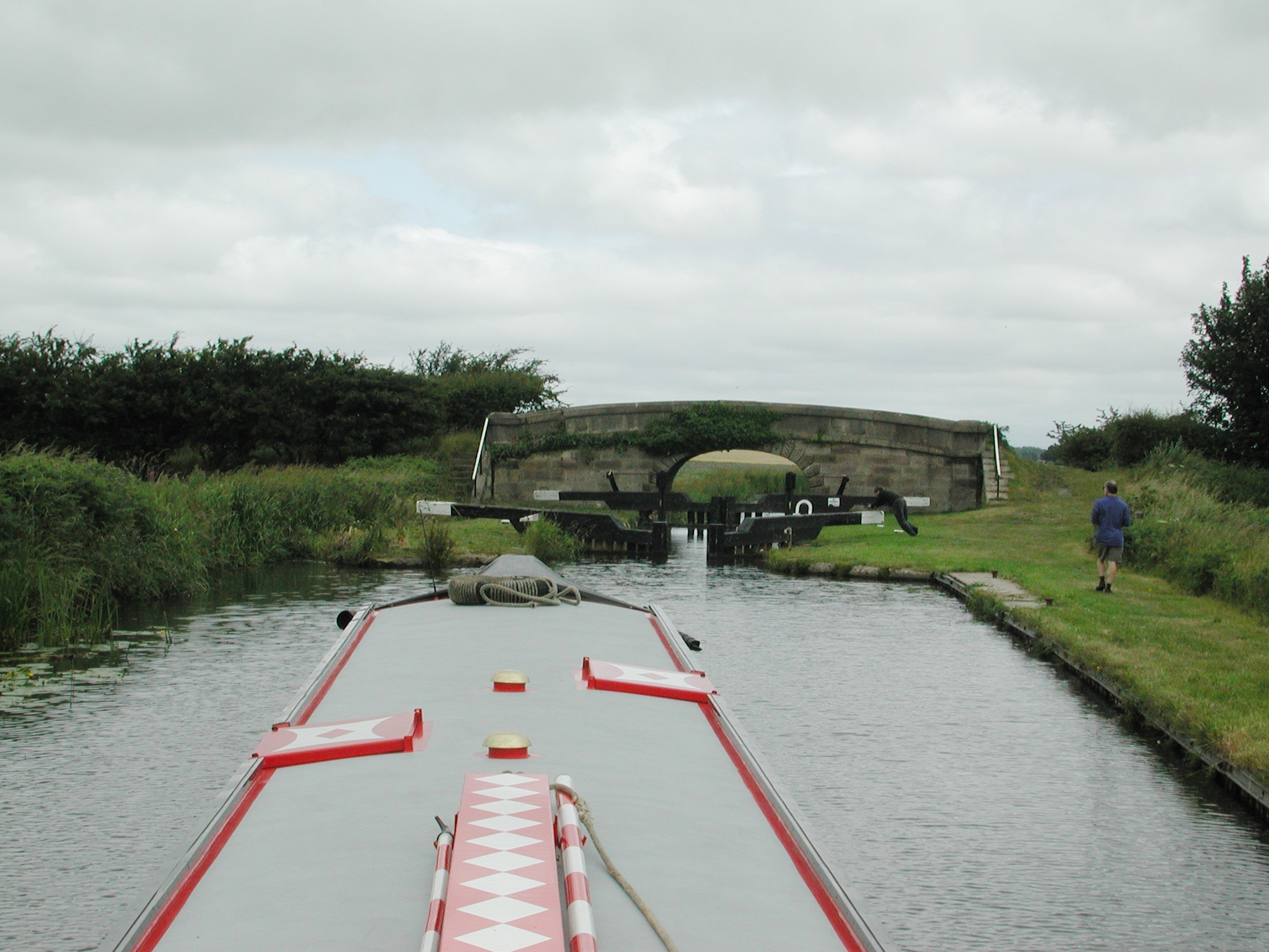 NB Earnest in Lathom Top Lock No 1. Main line beyond towpath Glovers Bridge No