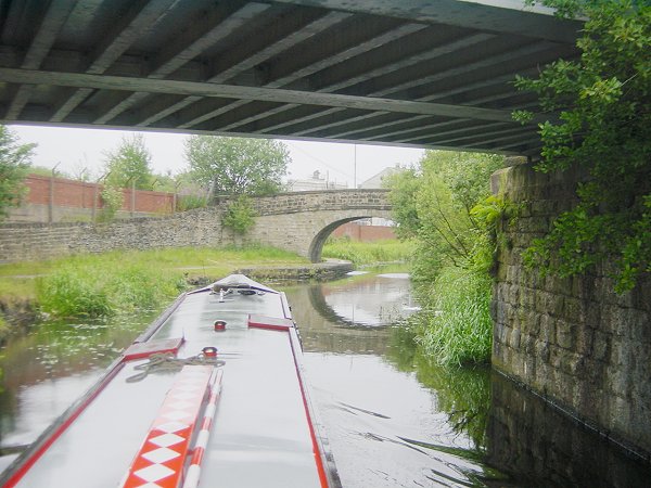 Peel Bank Bridge No 113 A and towpath bridge over old arm. Leeds and Liverpool