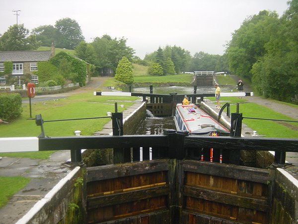 We did not meet up with anyone on Barrowford Locks and arrived at the top at 13:40, just having missed the Foulridge Tunnel timed passage (**:30 to **:40