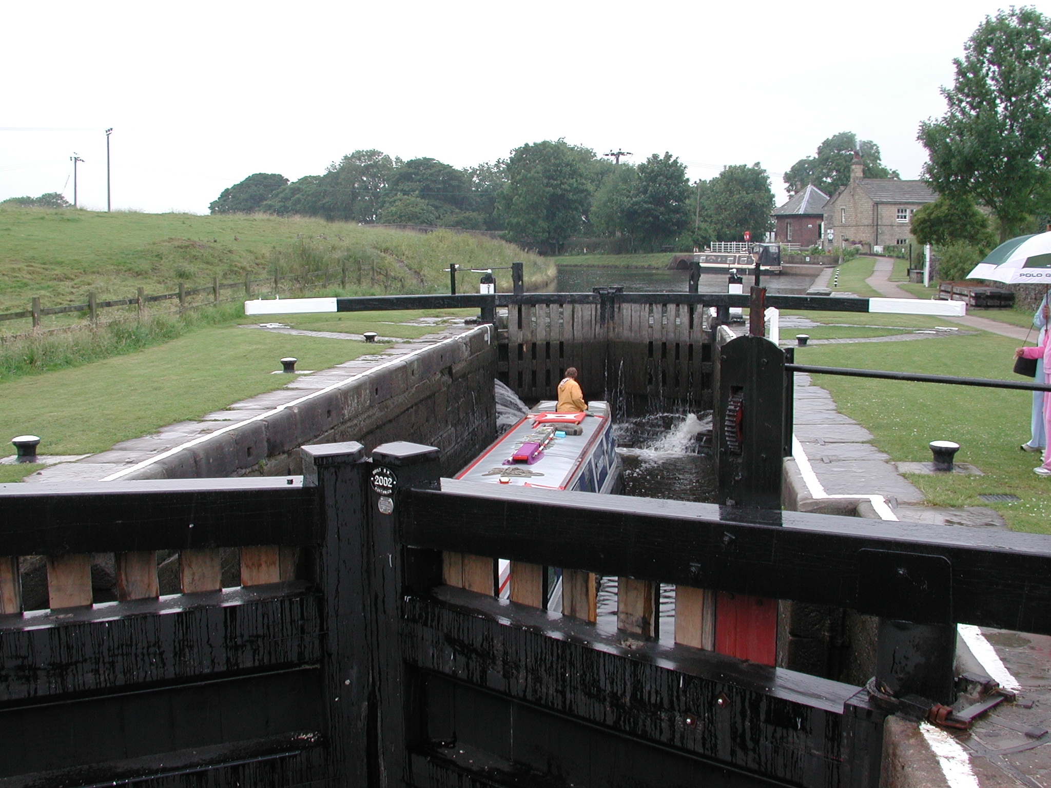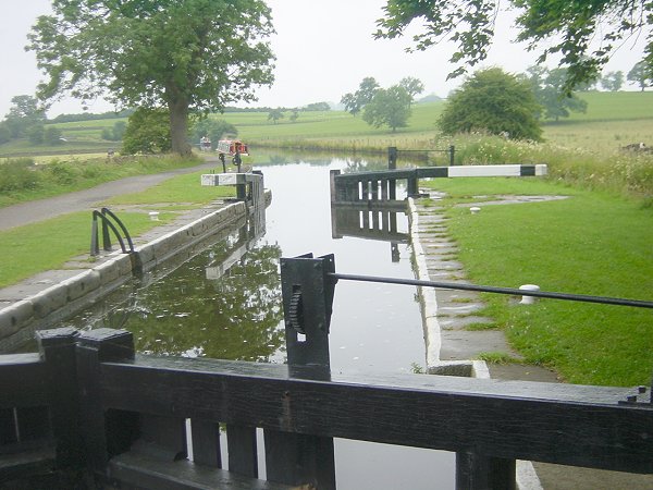 of Greenberfield Locks, where there was a brief respite in the rain. Beyond this over the beautiful East Marton pound, the weather was foul, too bad for