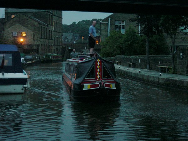 Getting ready to moor at Skipton at dusk. Leeds and Liverpool Canal.