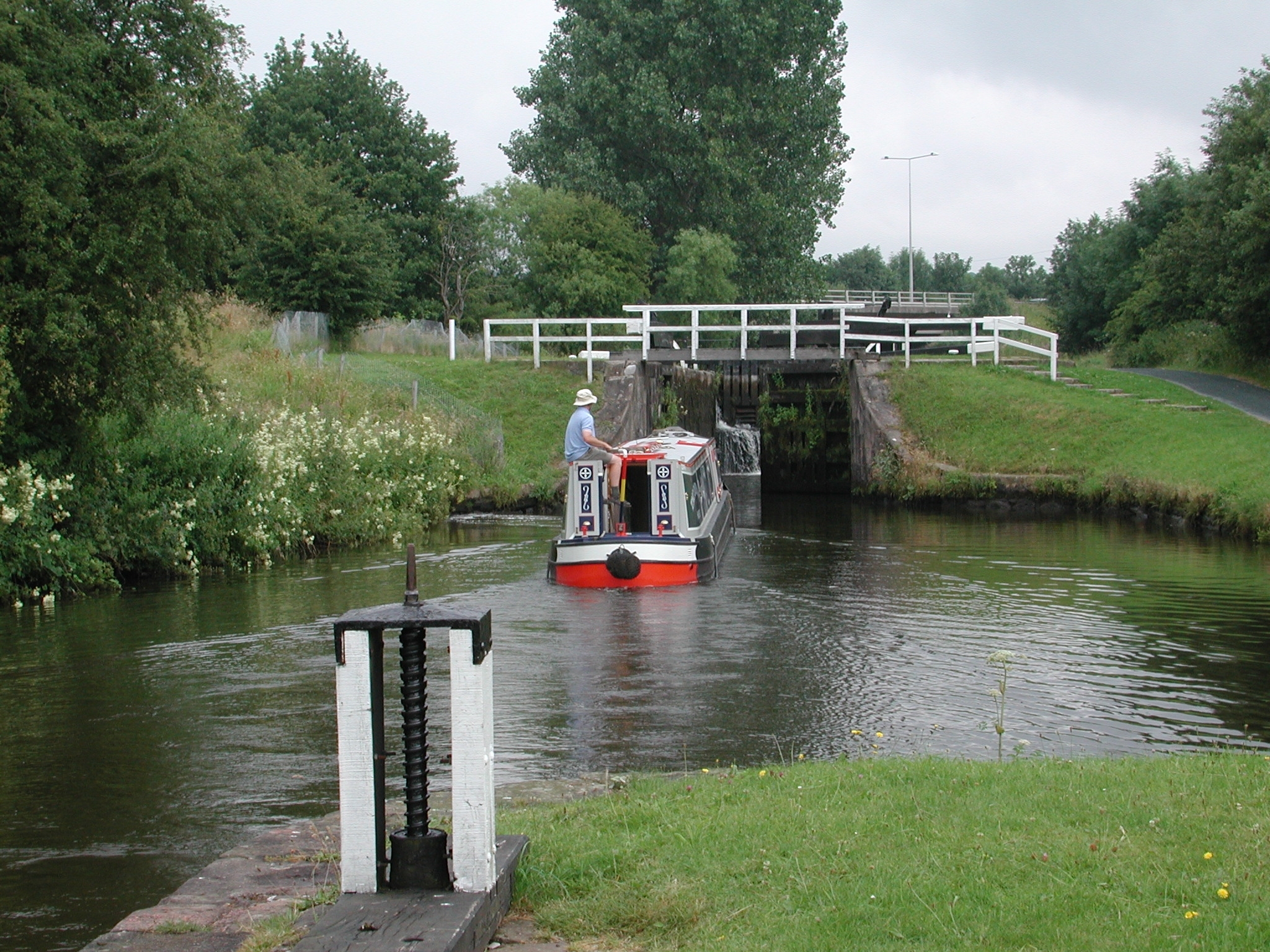 14:30, just as the lights turned green. The local boat winded at the other end, so yet again we were off on our own.