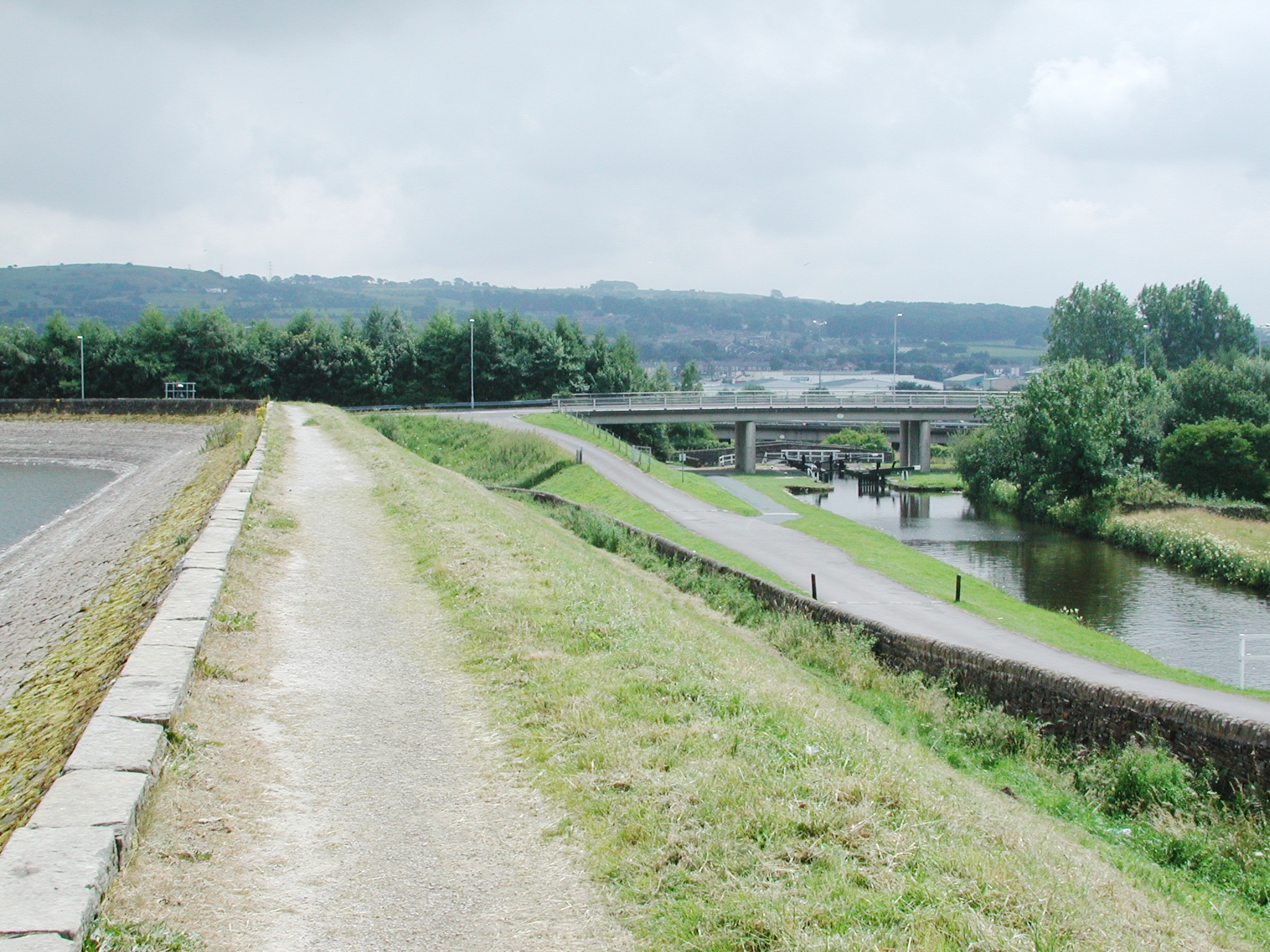 Reservoir embankment. Barrowford Flight. Leeds and Liverpool Canal.