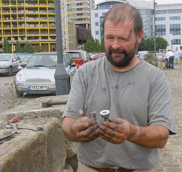 The easiest broken mount was first removed, rather easily seeing as we had the Porto-power Hydraulic wedgie, to hand.