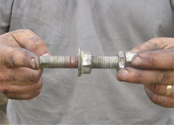 The bodge repair to the engine mount support bolt - joined with a thick nut!