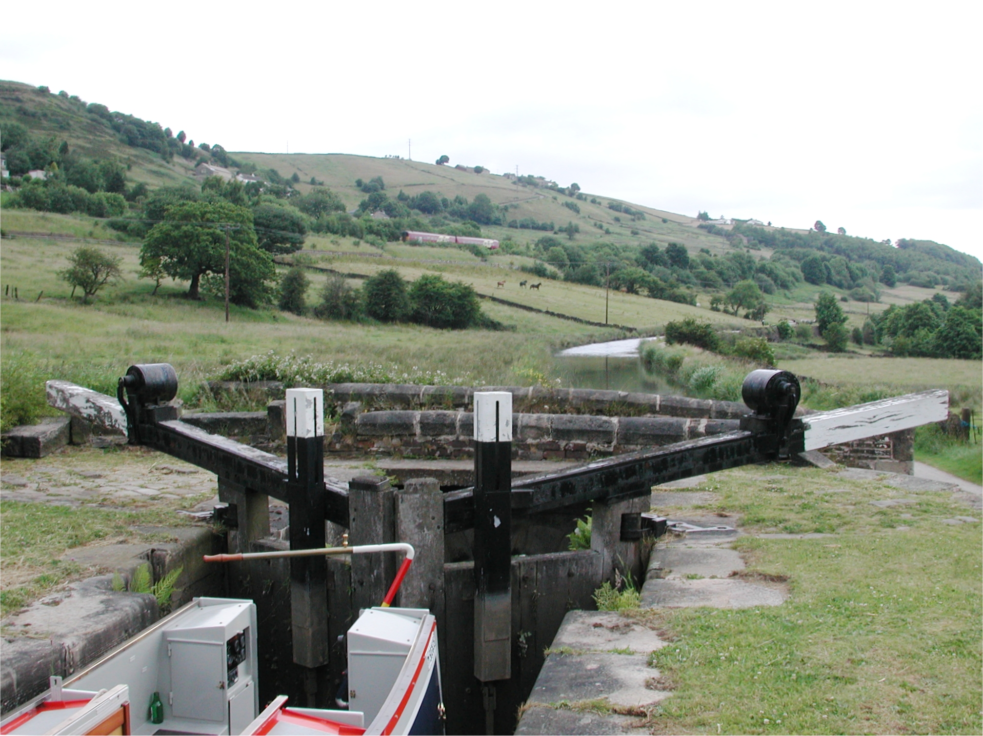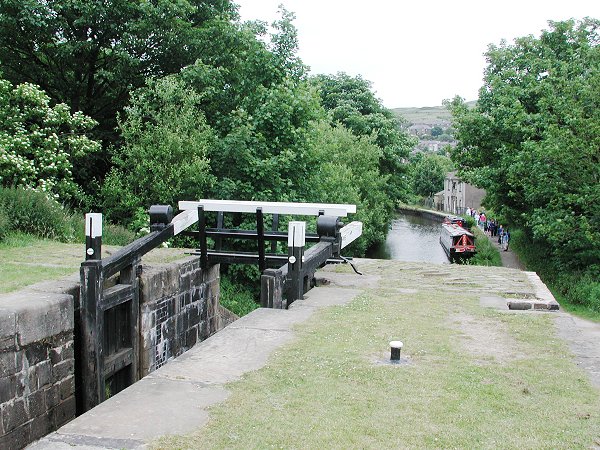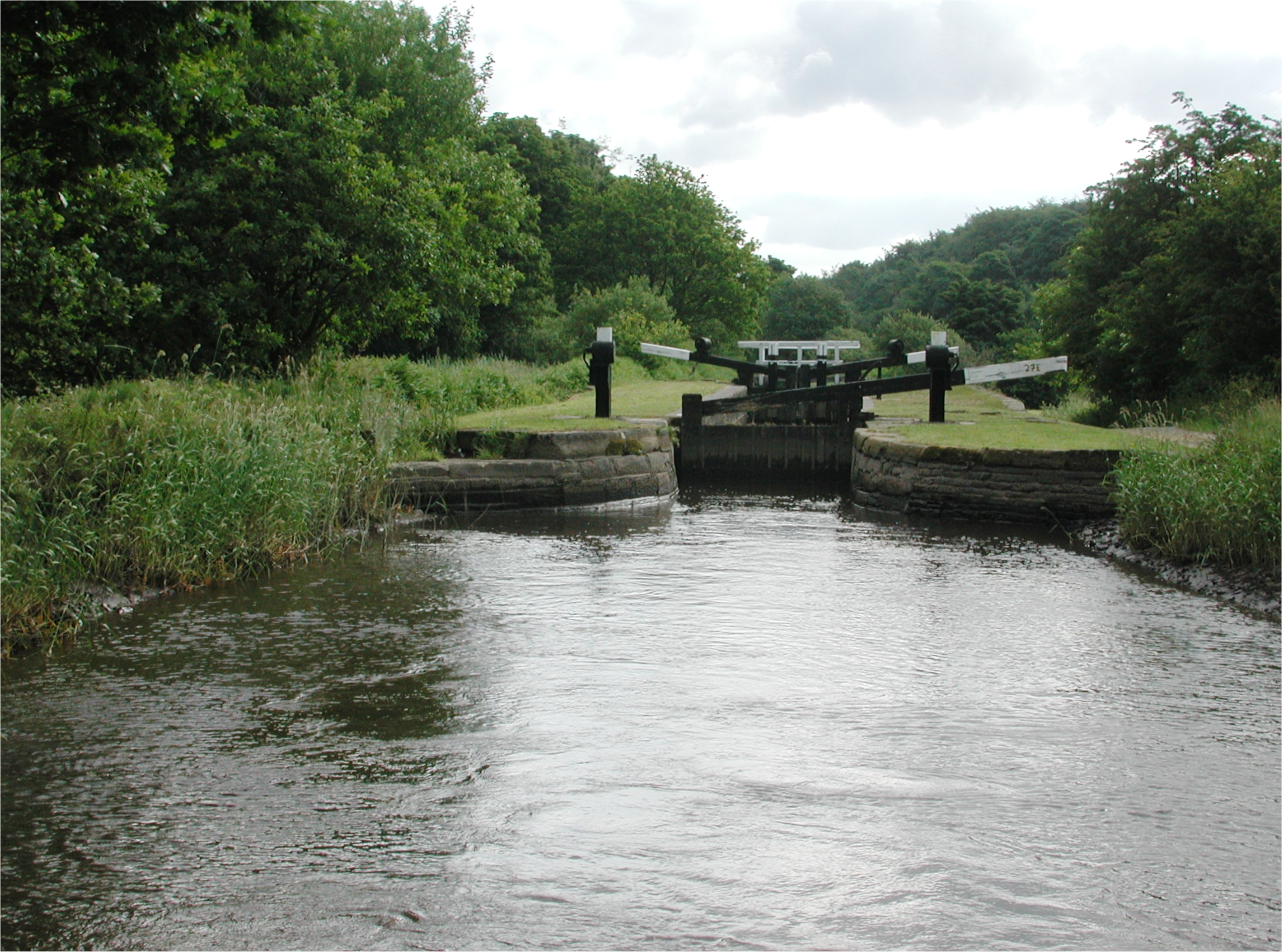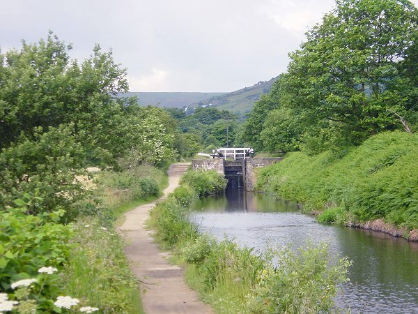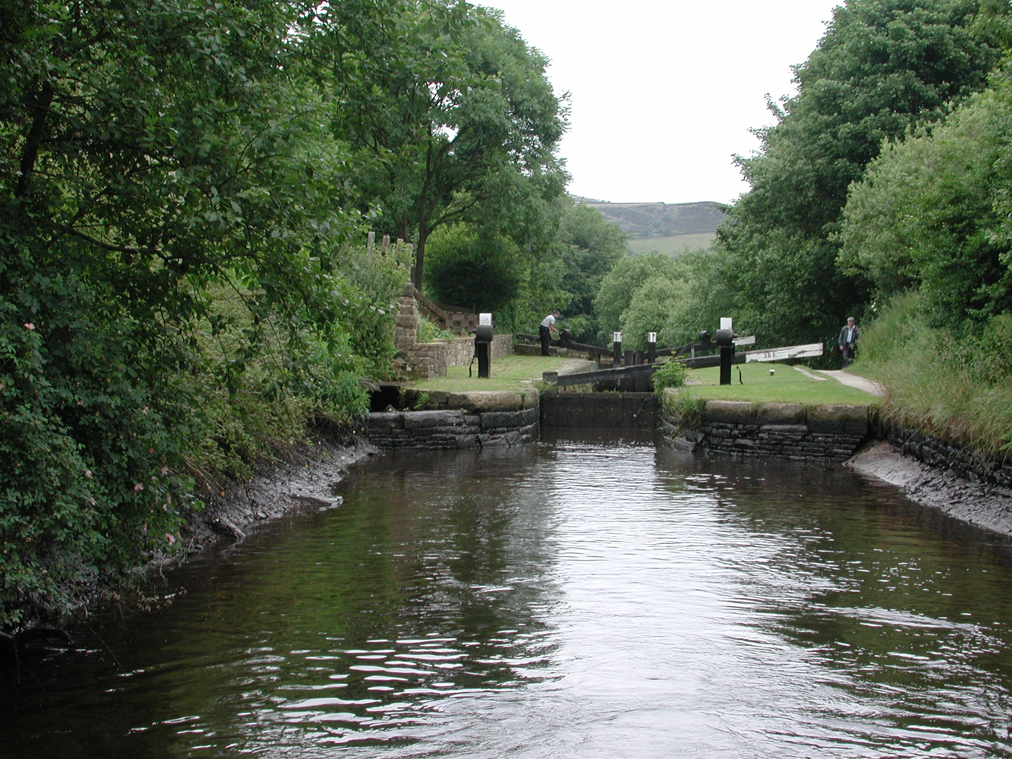 Looking back from Booth Lock Lock No 31 E. Huddersfield Narrow Canal.