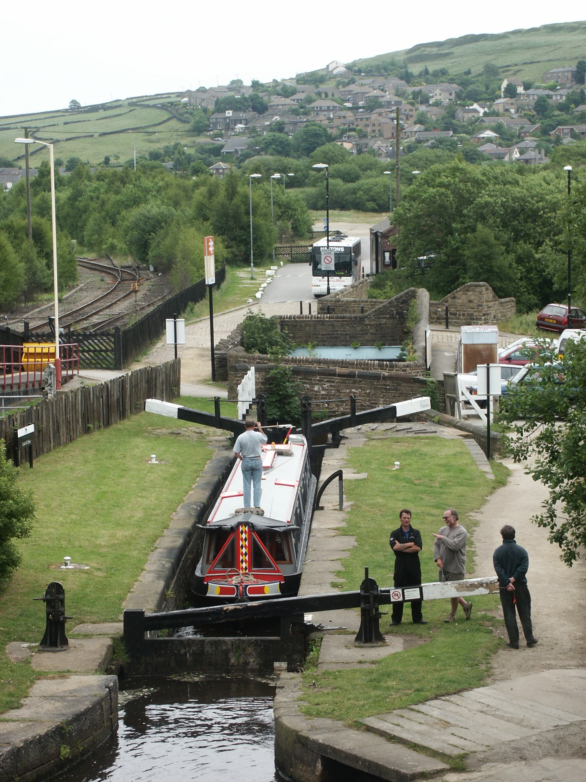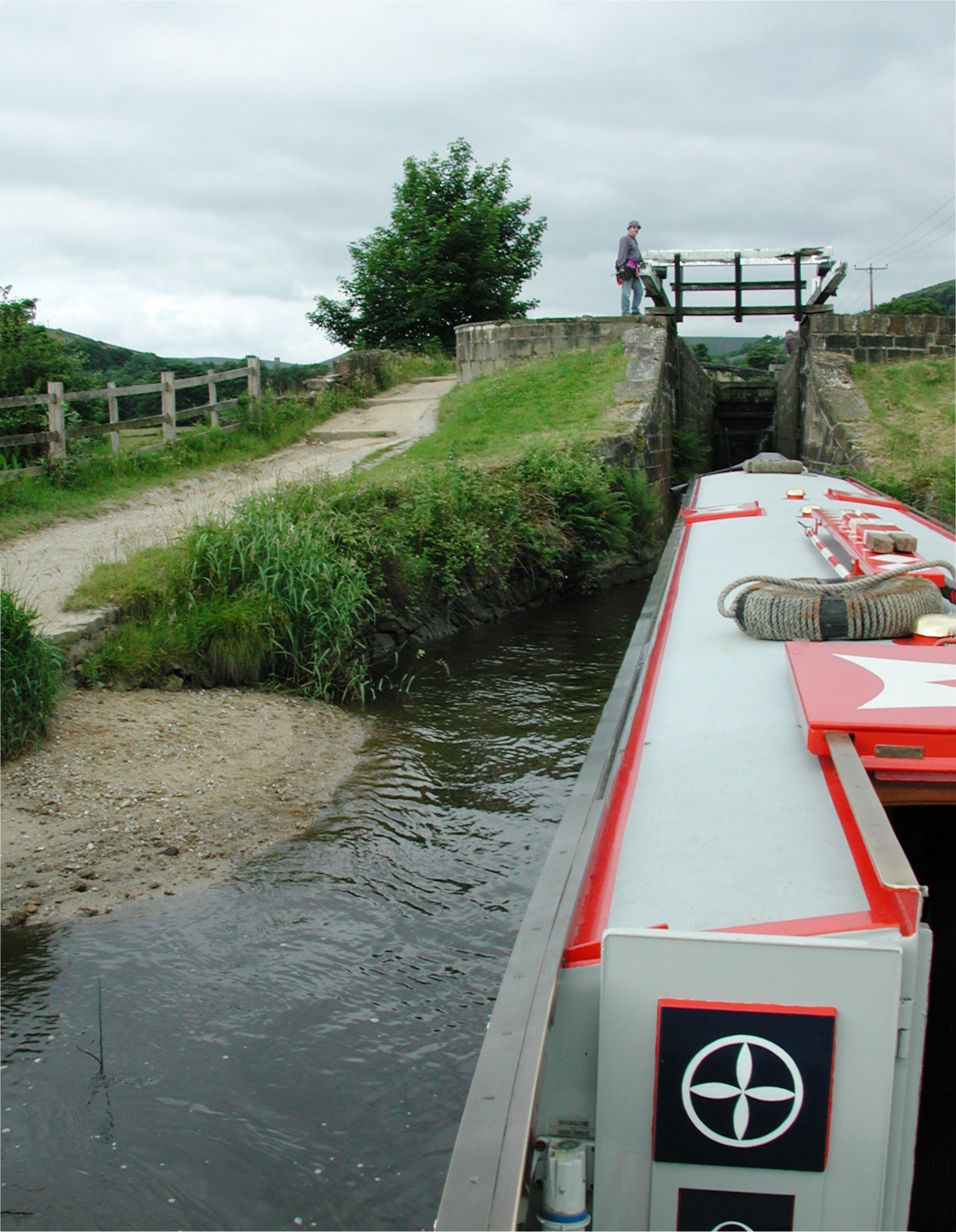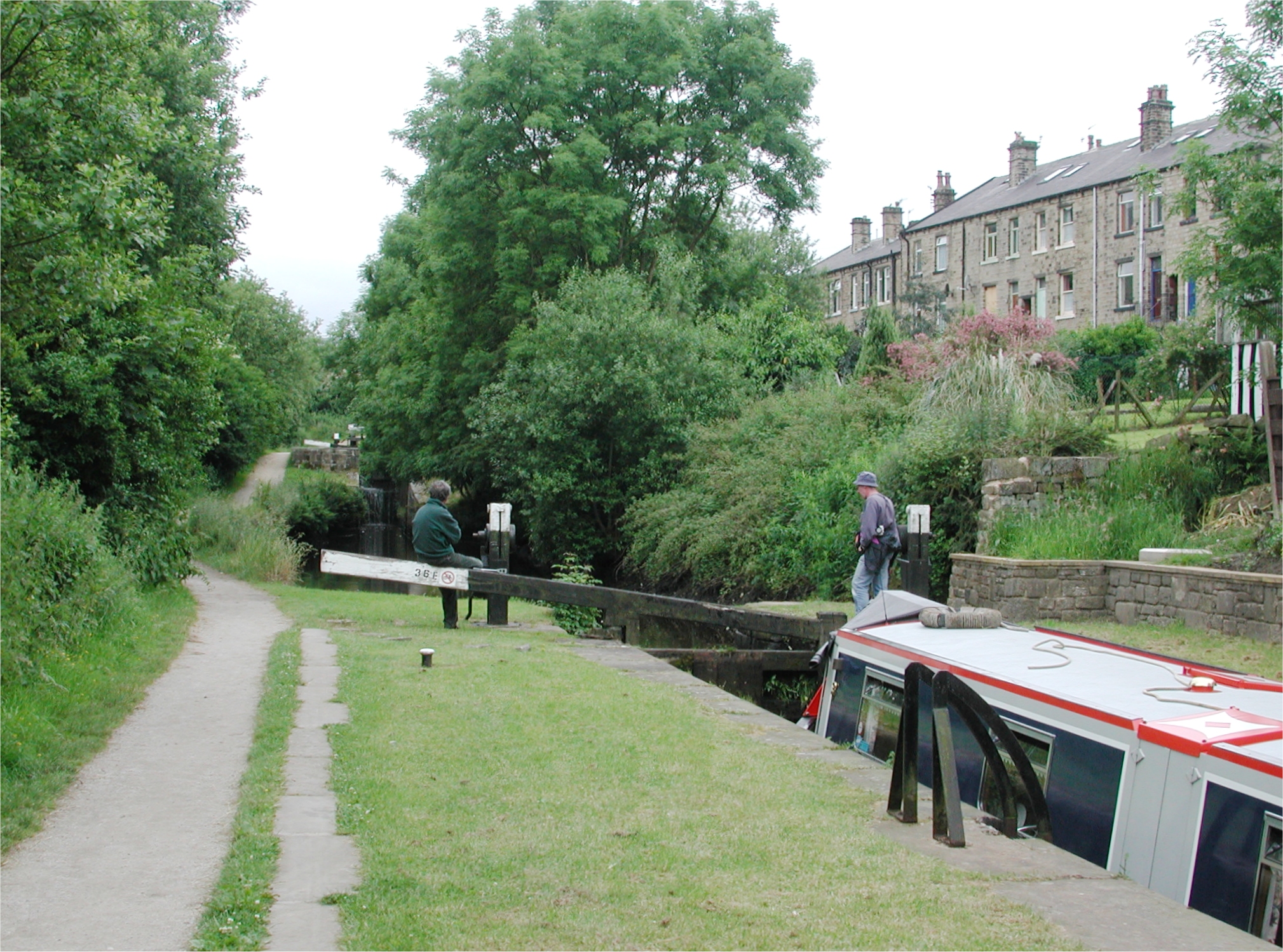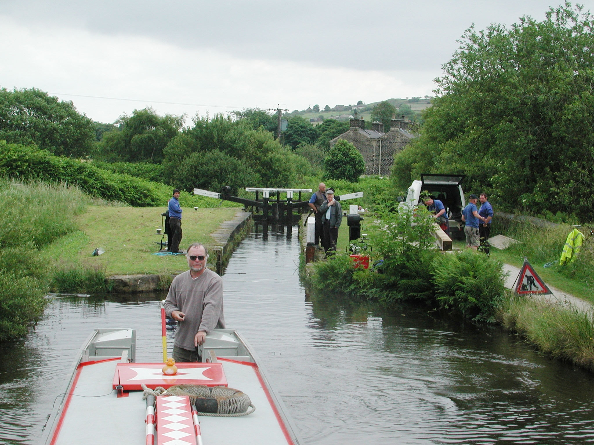 Waiting at Pig Tail Lock No 32 E for the assisted passage up. Huddersfield