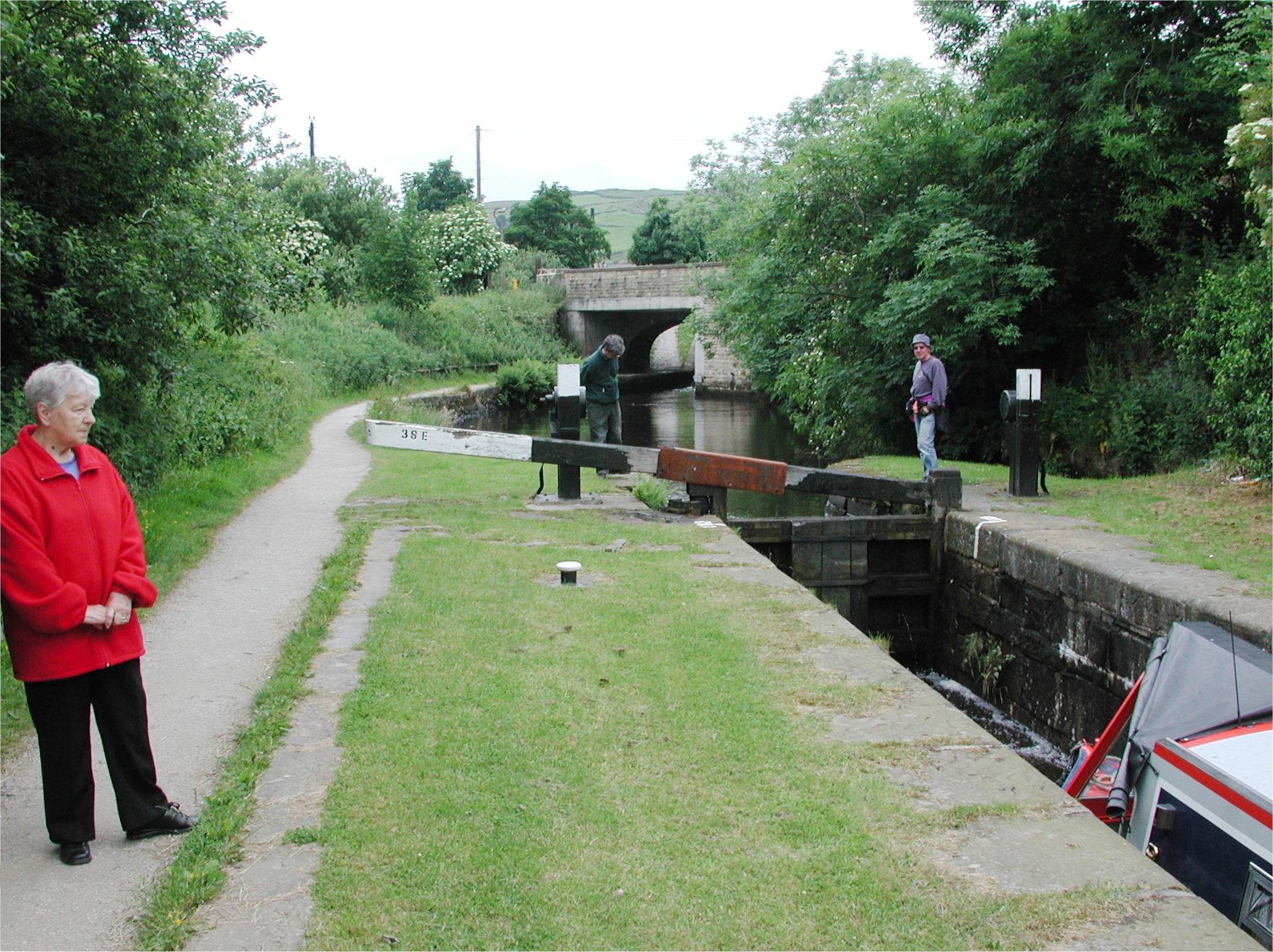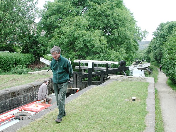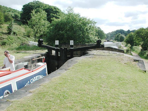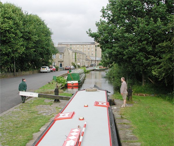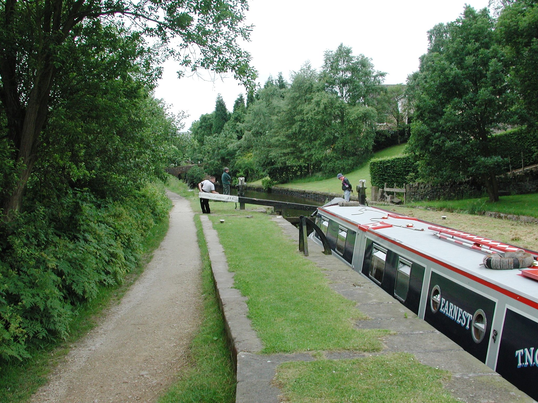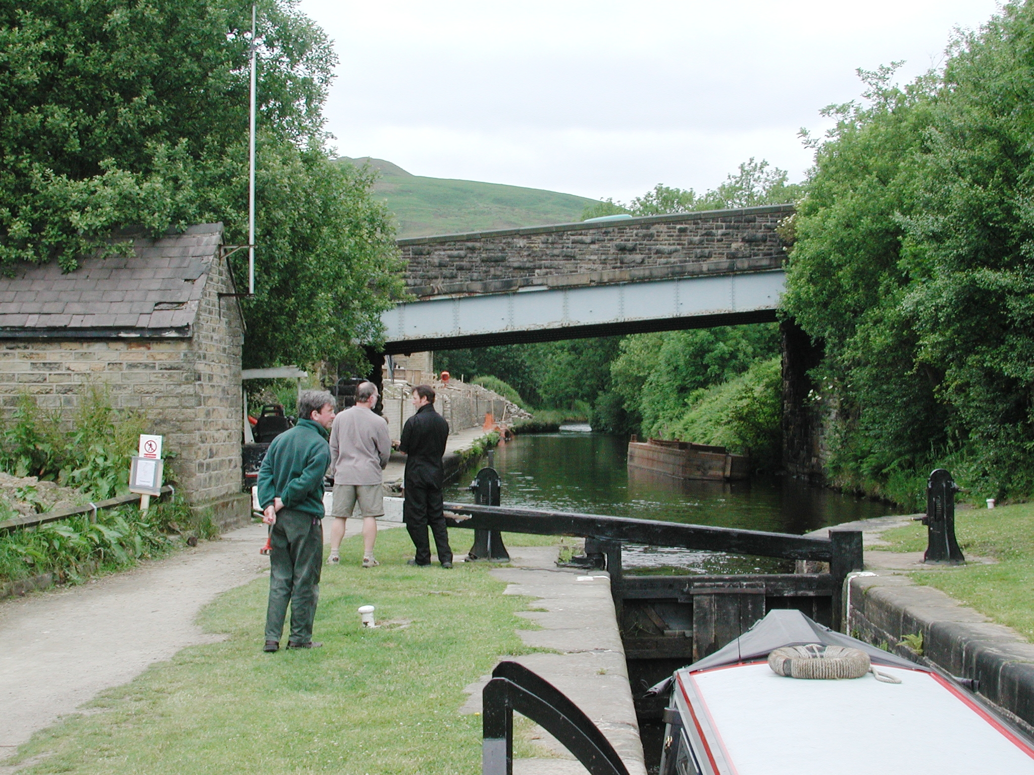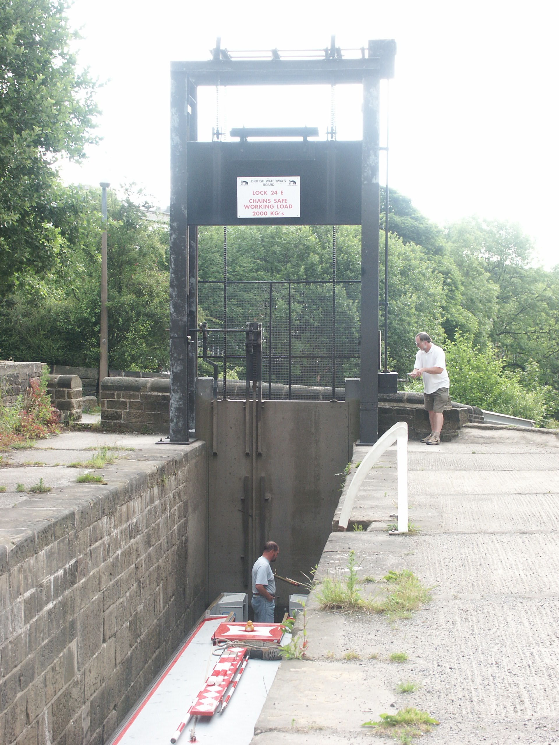 Waiting at Pig Tail Lock No 32 E for the assisted passage up. Huddersfield