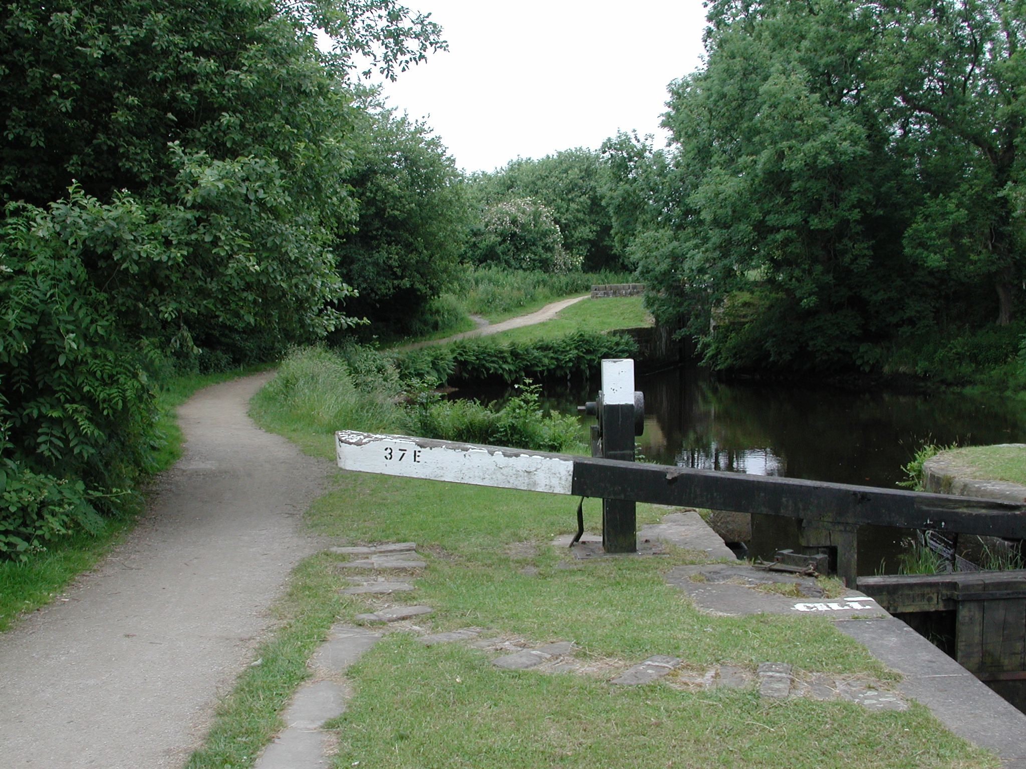Smudgees Lock No 37 E, Colne Lock No 38 E beyond. Huddersfield Narrow Canal.