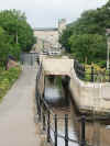 13:00. We moored up just below Lock 32E (the narrowest on the east side). BW were about to replace the upper balance beam, with some negotiation with