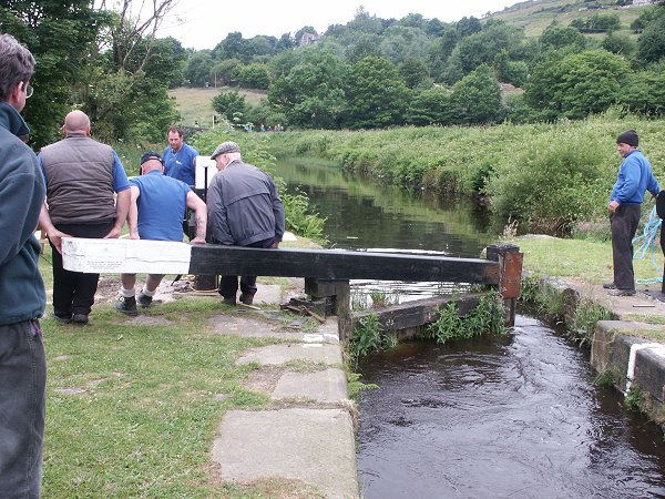 Lock beam replacement at Pig Tail Lock No 32 E. Huddersfield Narrow Canal.