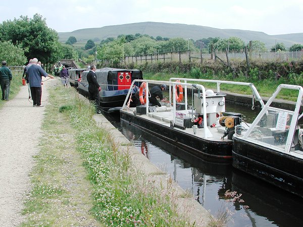 The tow arrives at Diggle. Huddersfield Narrow Canal.