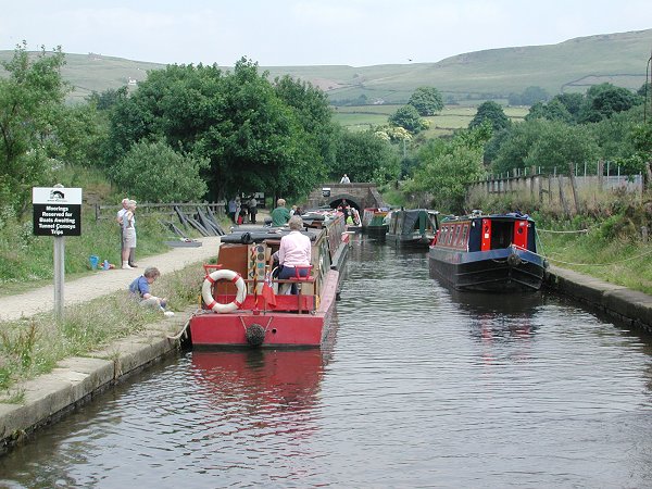 Reasonable moorings just above the Diggle Flight. Huddersfield Narrow Canal.