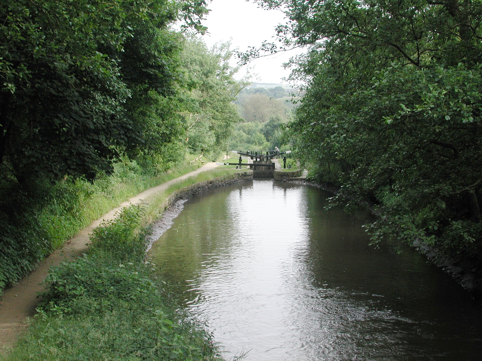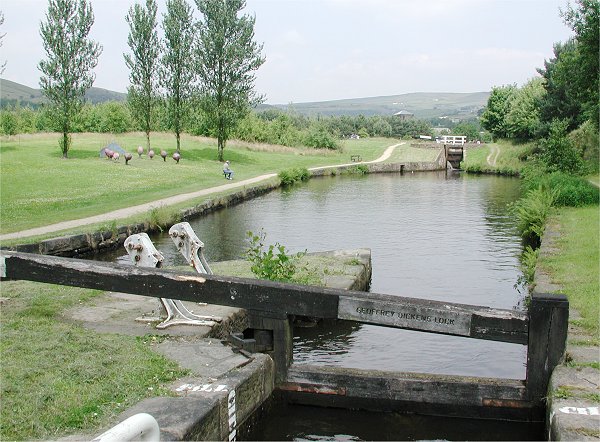Looking back at Keith Jackson Lock No 18 W. Huddersfield Narrow Canal.