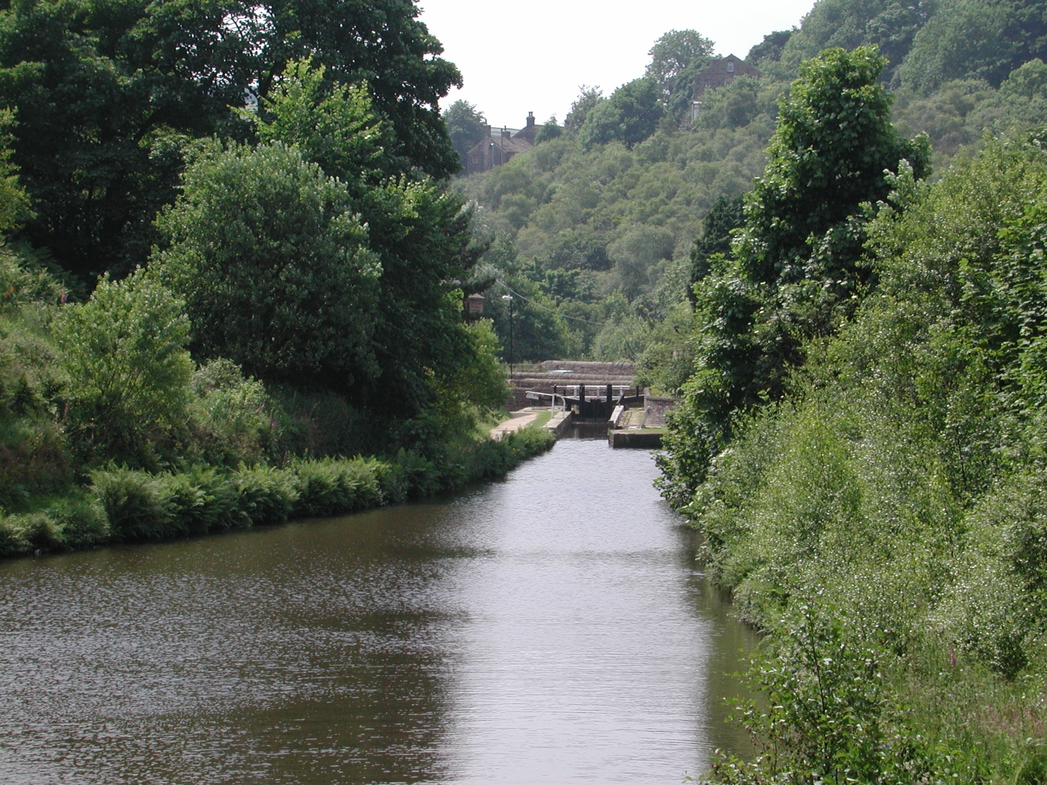 Looking up at Avenue Lock No 10 W from Black Rock Lock No 9. Huddersfield Narrow