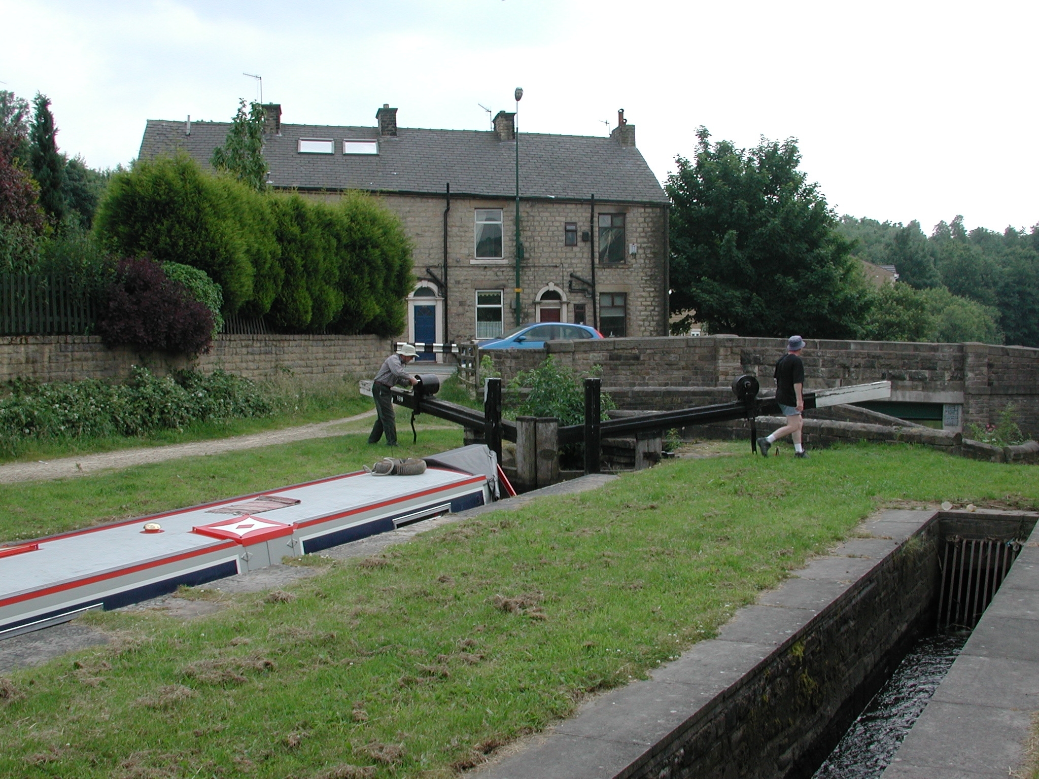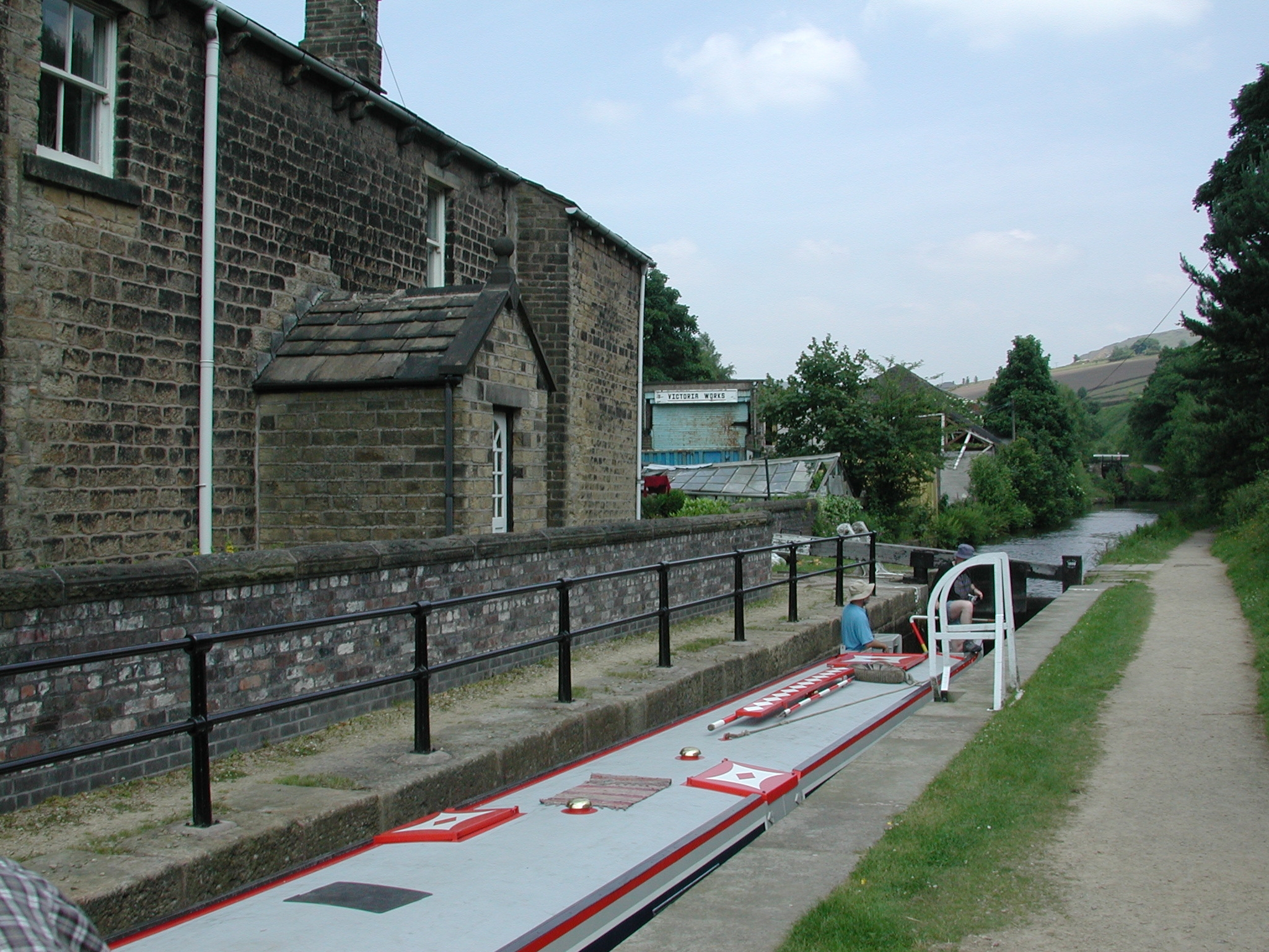 Lock No 6 W Stalybridge. Visitor Mooring out side the harridan's house! Huddersfield