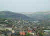 View over Mossley and up to Uppermill. The Huddersfield Narrow Canal is