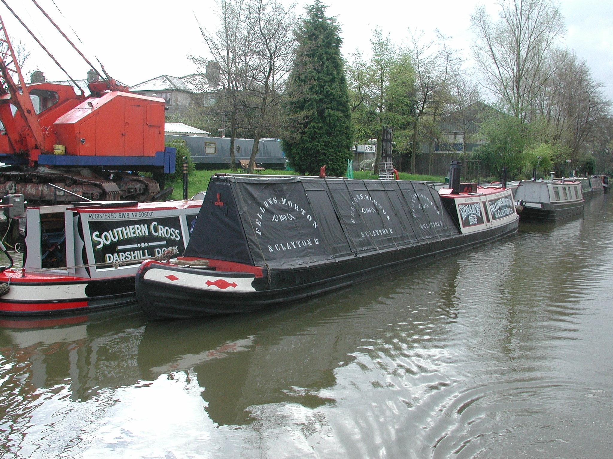 Above the water level all was well in the world, the bluebells making an appearance in the first pretty wooded section. Dukinfield Junction was passed at 10:10 and as expected we soon were gliding along in the much improved Ashton Canal. Martin homed in by bus and we met him after going very slowly under Guide Bridge. Martin waved at the many people he knew at Guide Bridge boatyard. Butty "Maria" was resplendent in her almost finished new paint scheme.