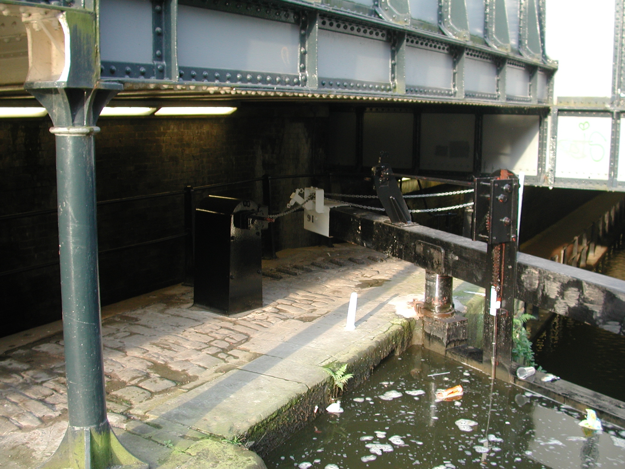Below Lock 10 we attempted entry into the Stockport Branch, but stop planks in just beyond the turnover bridge. The short arm sported many trolleys and so we probably would not have got any further. At Ancoats Locks a pair of BW bods were