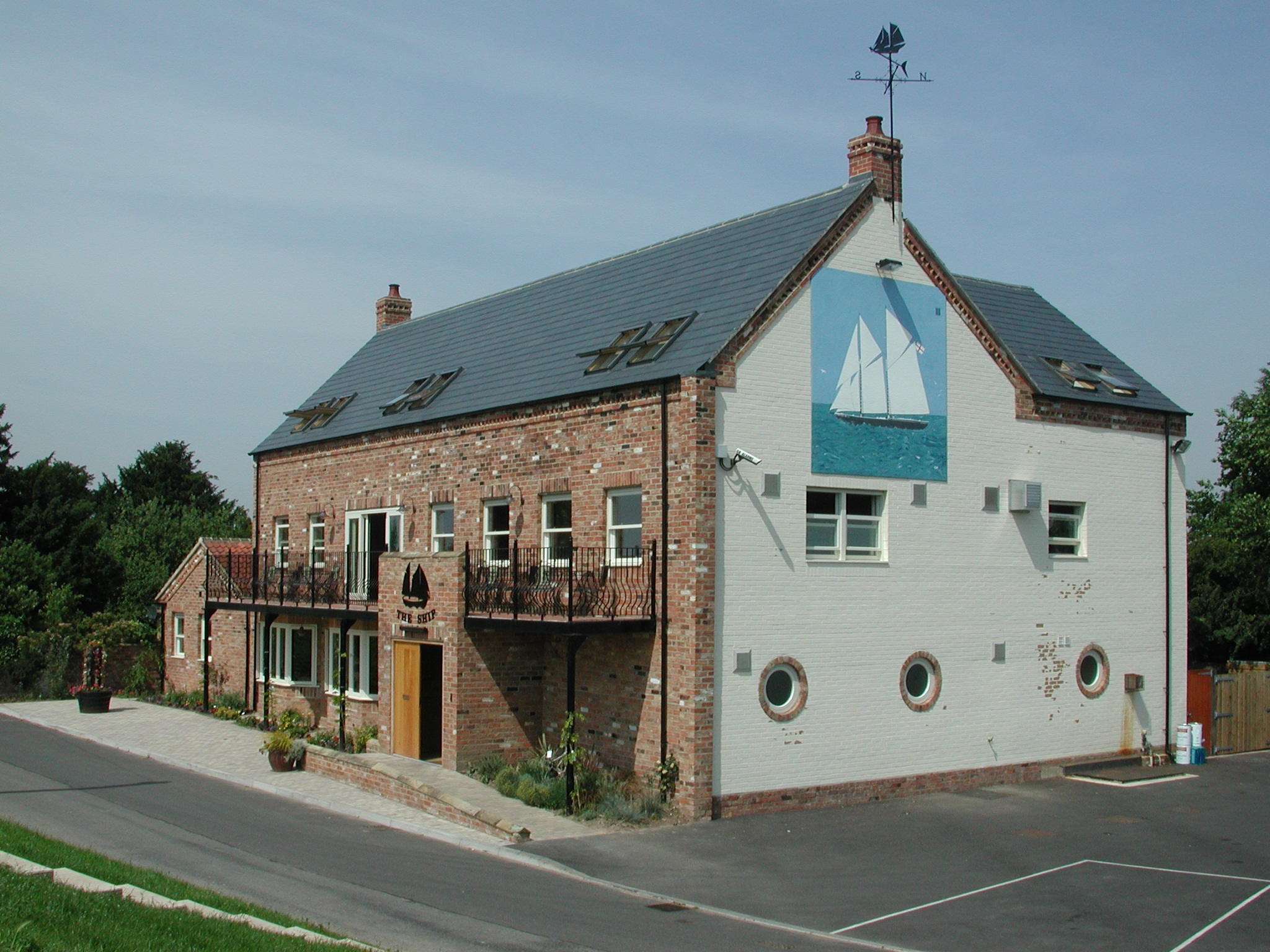 The rebuilt The Ship Inn at Surfleet-Seas-End. River Glen.