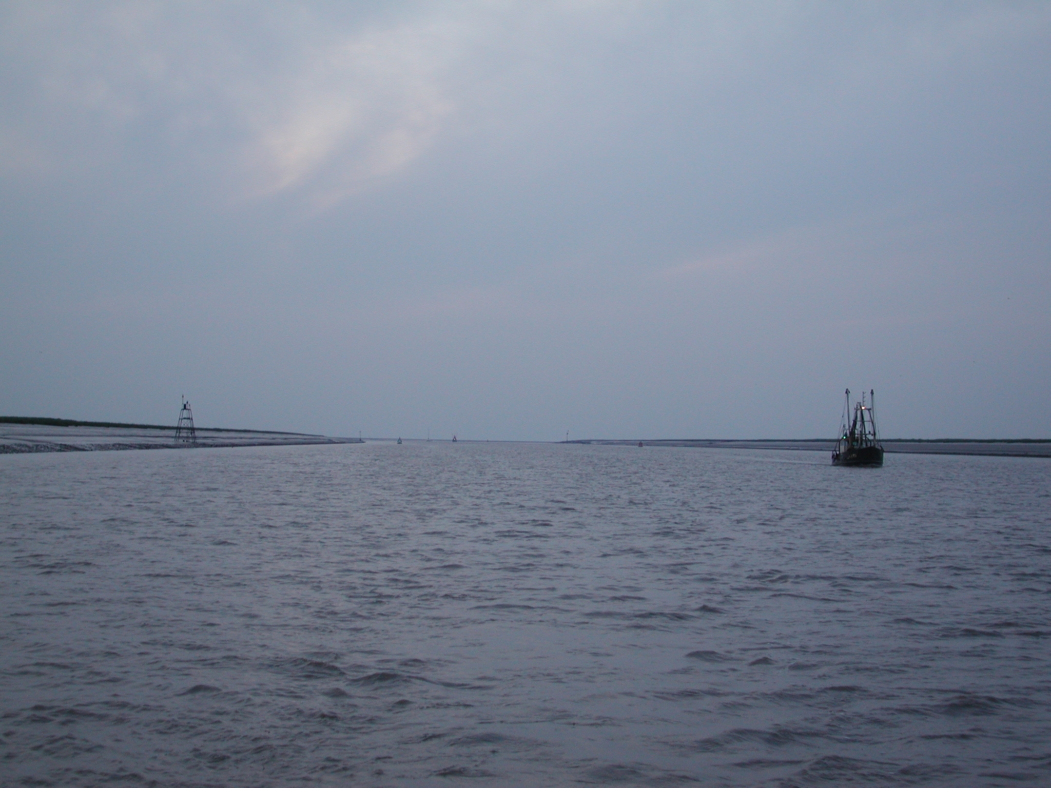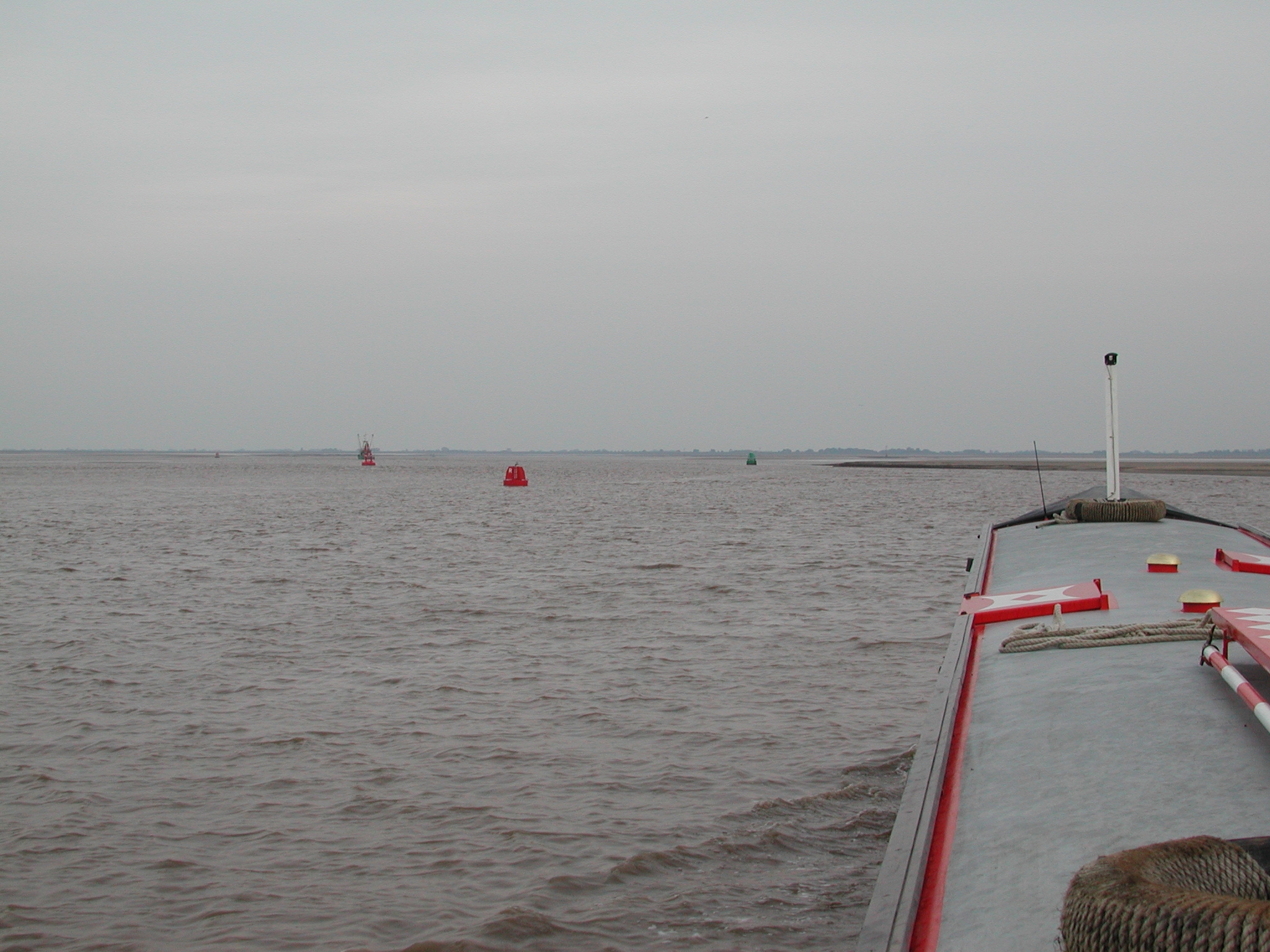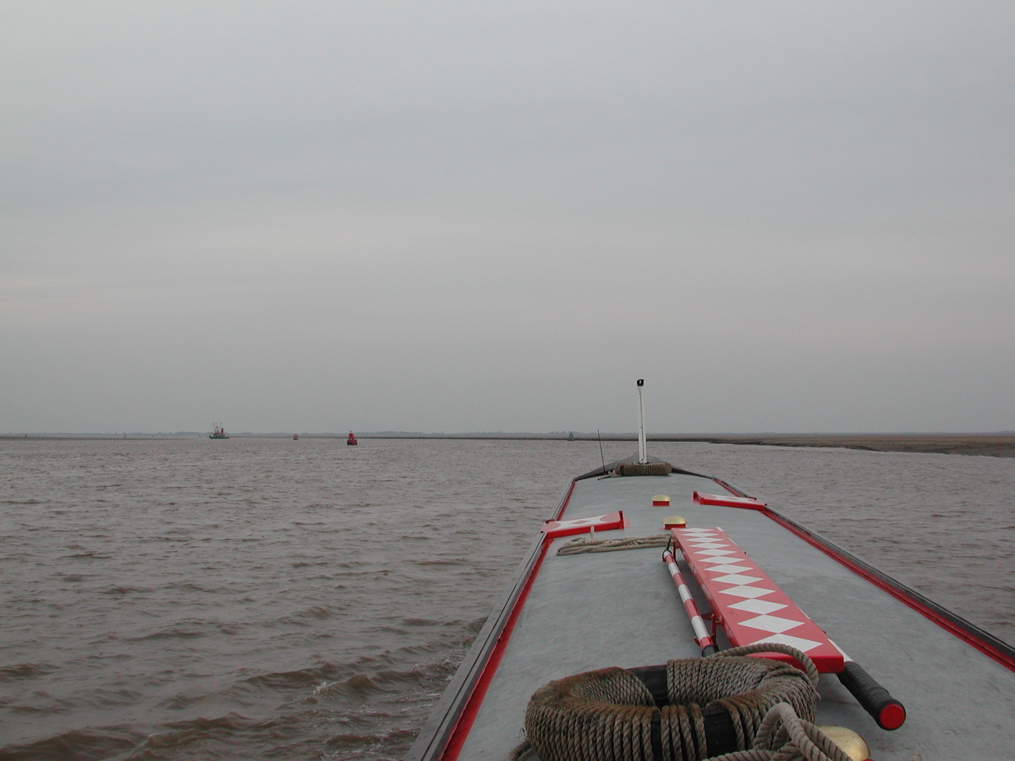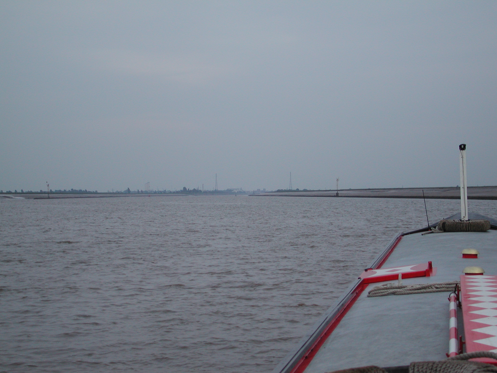 Once in channel we were protected by the still exposed sands, things calmed down, but we had to go in on tickover, sometimes out of gear, to avoid running ahead of the flood. This was very