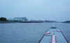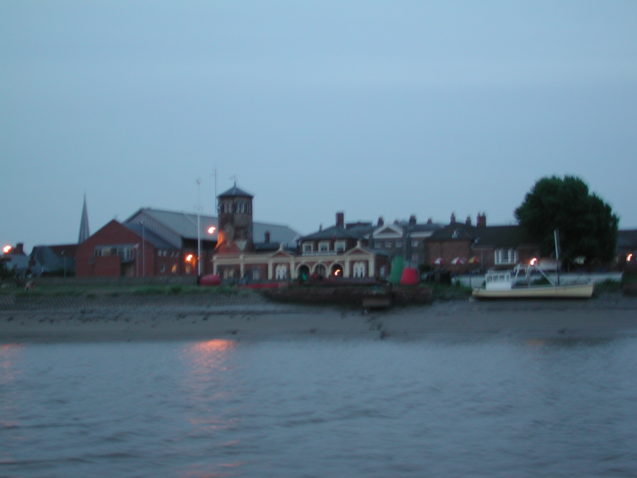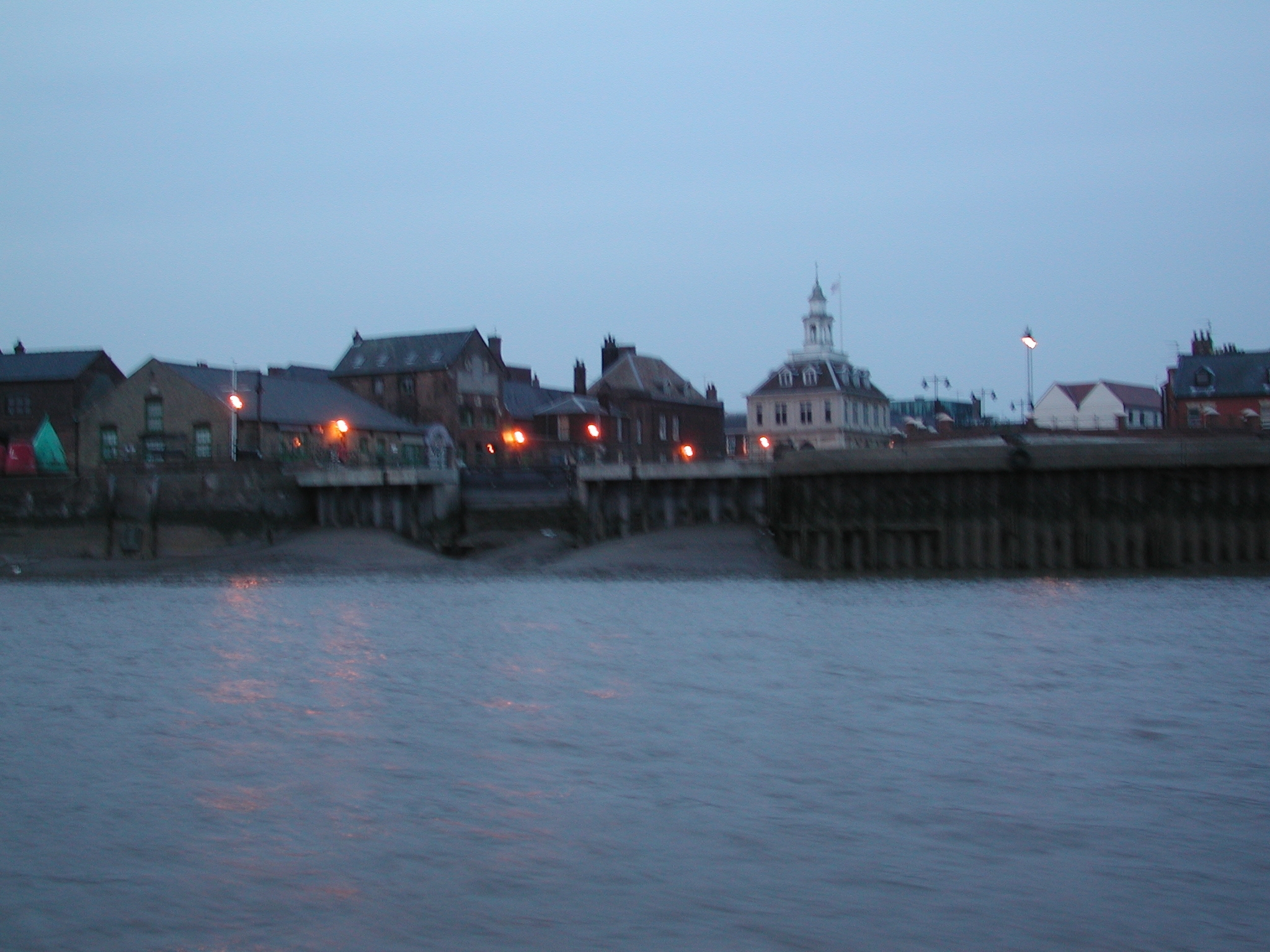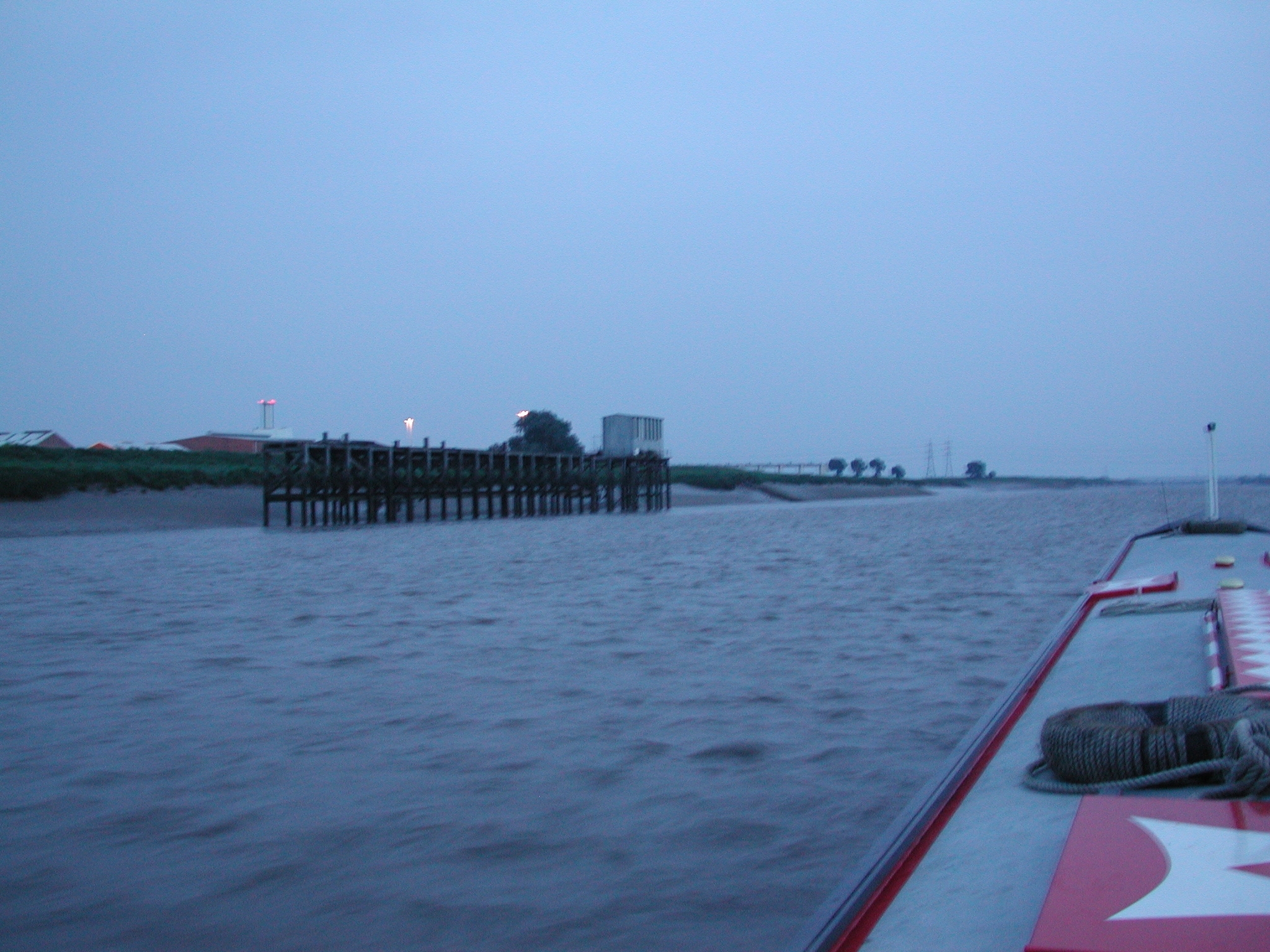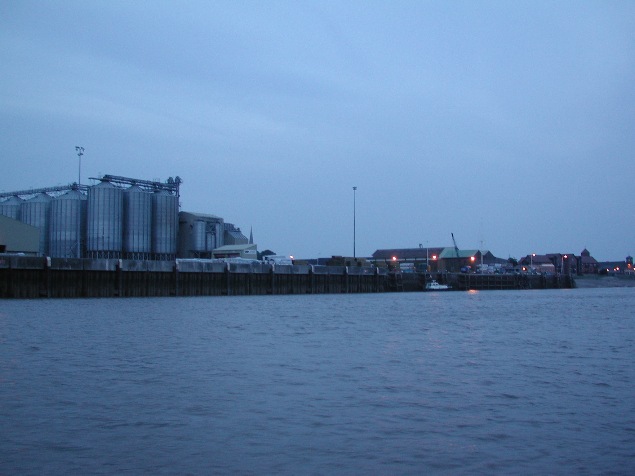 Lynn Cut. Kings Lynn comes into murky view in the fading light.