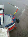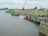 A private narrowboat (Newly weds honeymoon!!!) was high and dry, fortunately level, straddling the silt island and the nearly completed channel that EA had been dredging with the drag line excavator that was just getting in position as we went up the Ely Ouse. A working NB (Aquarius) just happened to be about and was to come over from Salter's Lode on the level and try to drag the un-named green narrowboat off the bank at high water. This would be the last chance for a week, seeing as we were now going off Springs. One narrowboat came over from Salter's, then NB Aquarius came and managed to drag the green narrowboat off the bank and into Denver. By that time another 60ft narrowboat, (The Smith's on NB Emma) had arrived.