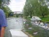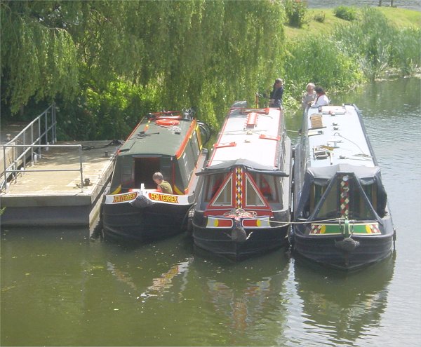 Neil had to use a fair bit of power and crab Earnest upstream towards the New Bedford, before swinging round to miss the silt..............NB Emma did not......... and was swept sideways onto the silt bar. Neil managed to go back with Earnest, but did not fancy the chances of also getting stuck, so we aborted and headed back down to Salter's. The lady from NB Aquarius was about and the best bet was for Mike the Denver locky to lock down Aquarius backwards to pull NB Emma off.