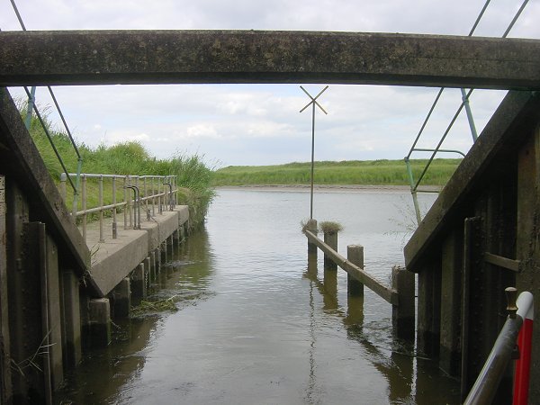 Salter's Lode Sluice. Tidal River Great Ouse / Well Creek.