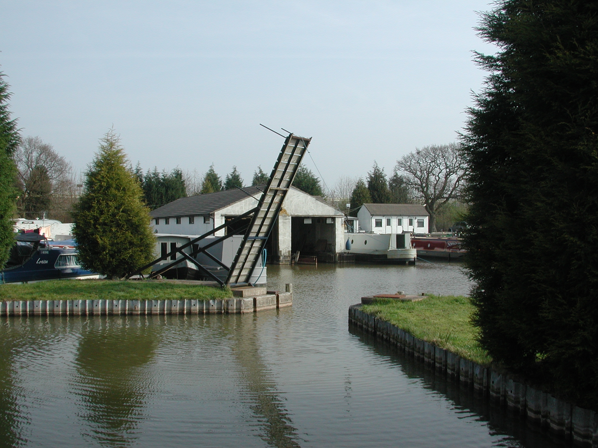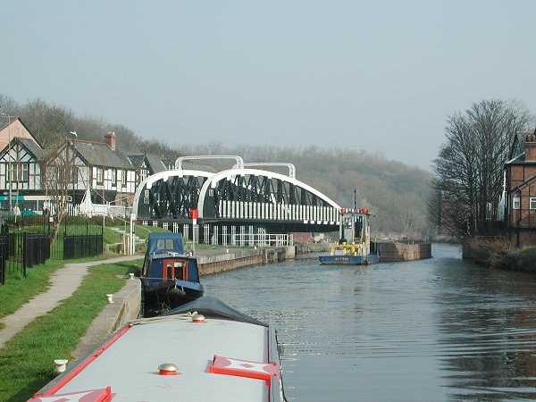 Northwich Town Swingbridge open for the dredging traffic. Weaver Navigation.