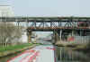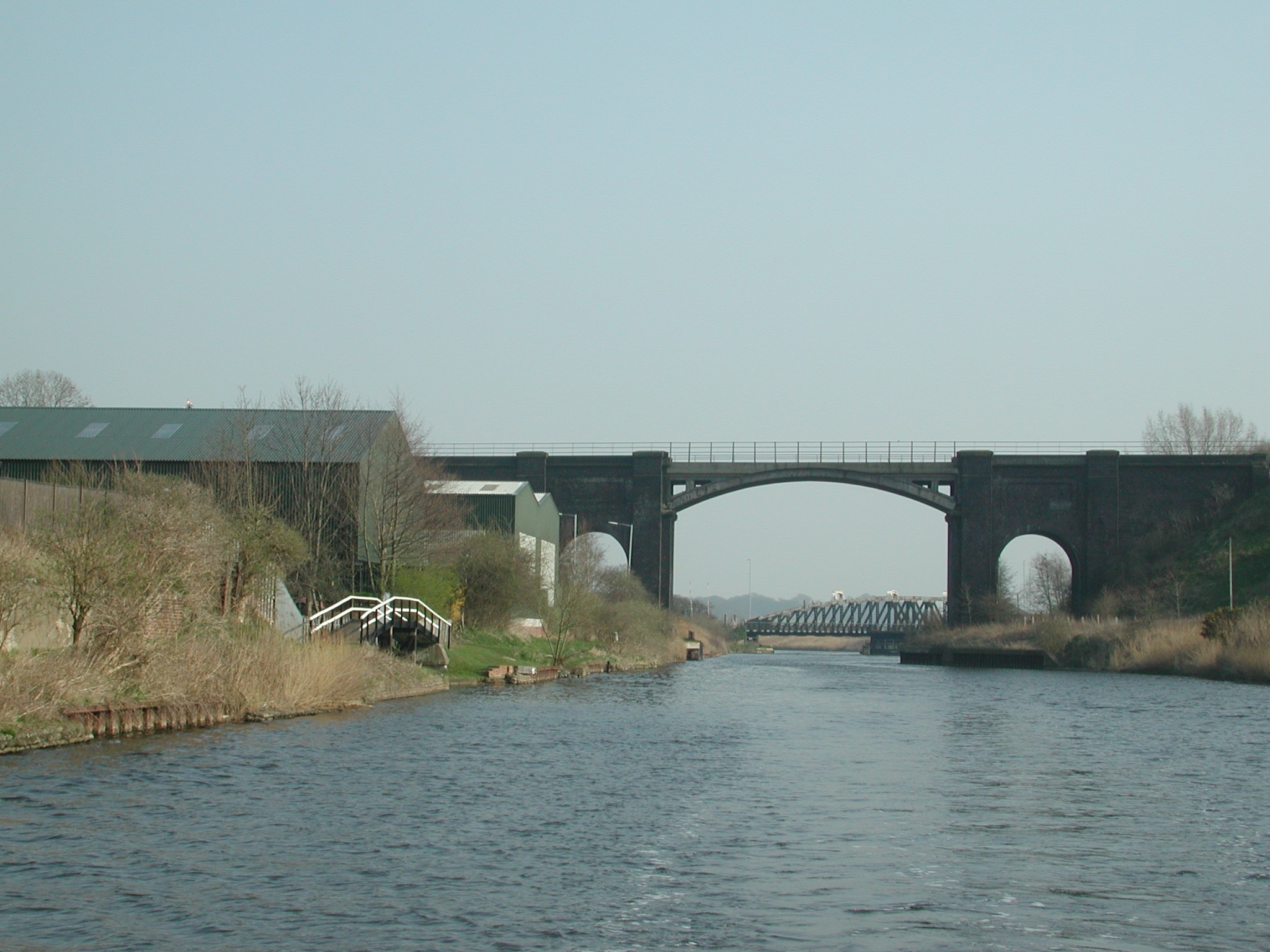 Looking back at Sutton Railway Viaduct and Swingbridge. Weston Canal.