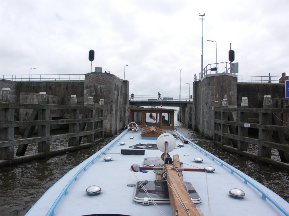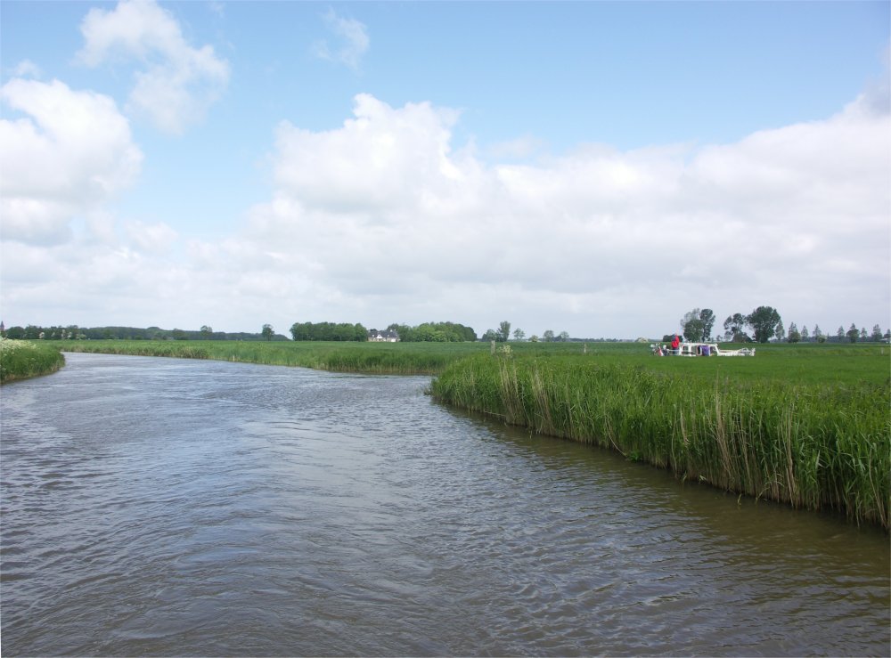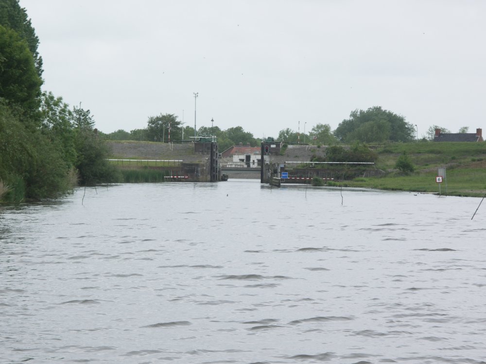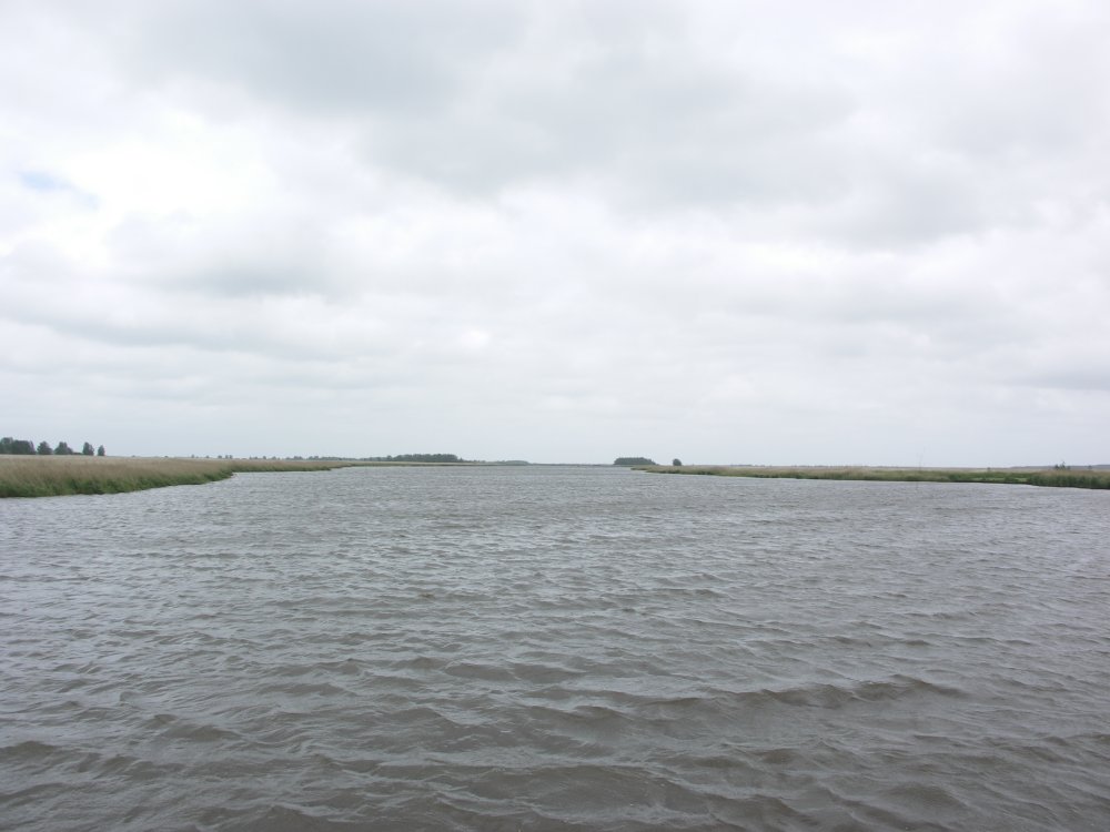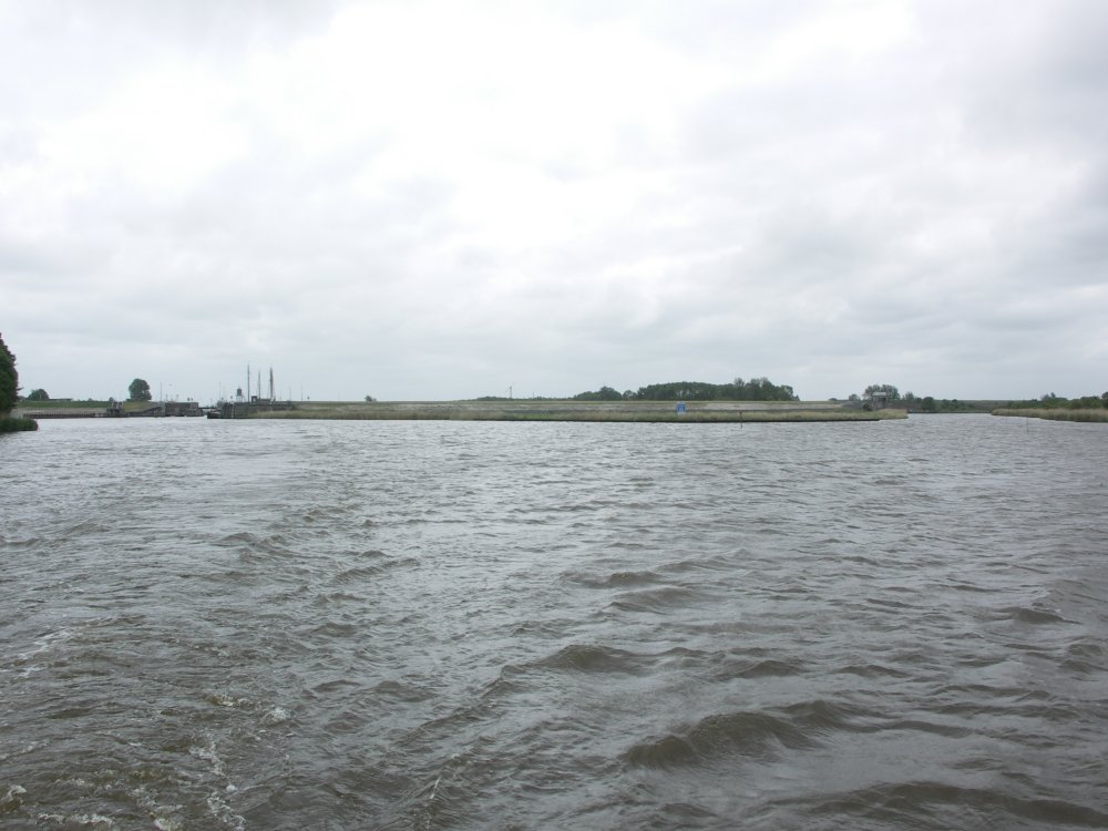 Looking back at Louwes-Keersluis, entrance to the Hunsingokanaal. Zoutkamperril.