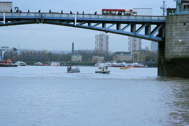 We have now turned and stemming the ebb, we approach Limehouse. (Photo Tim