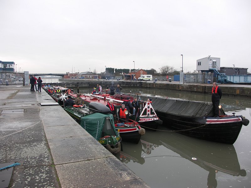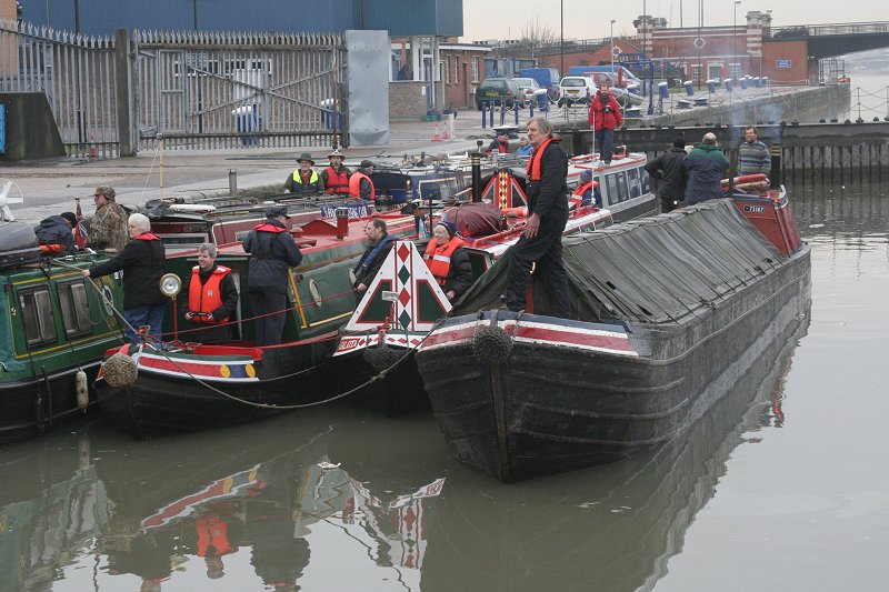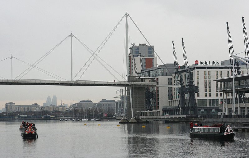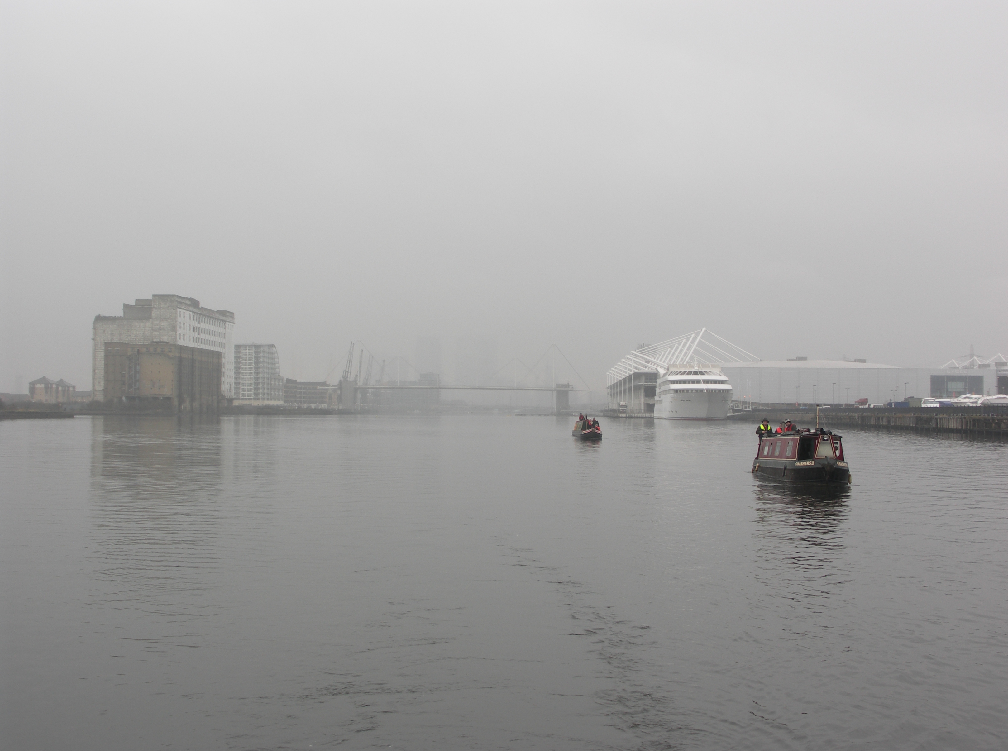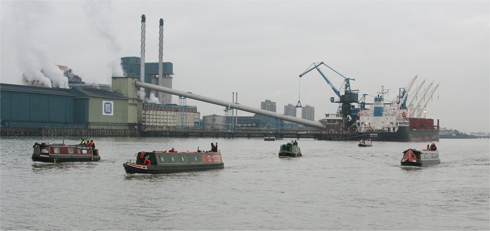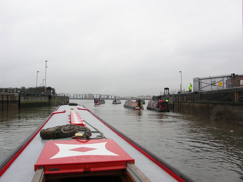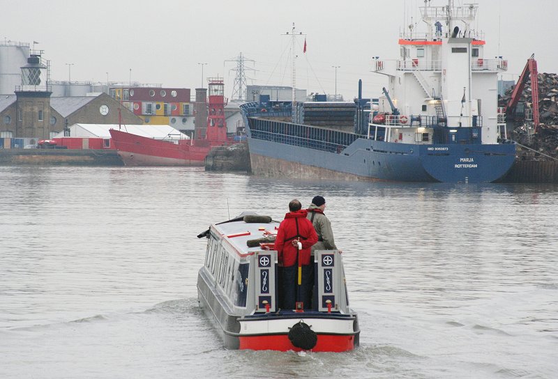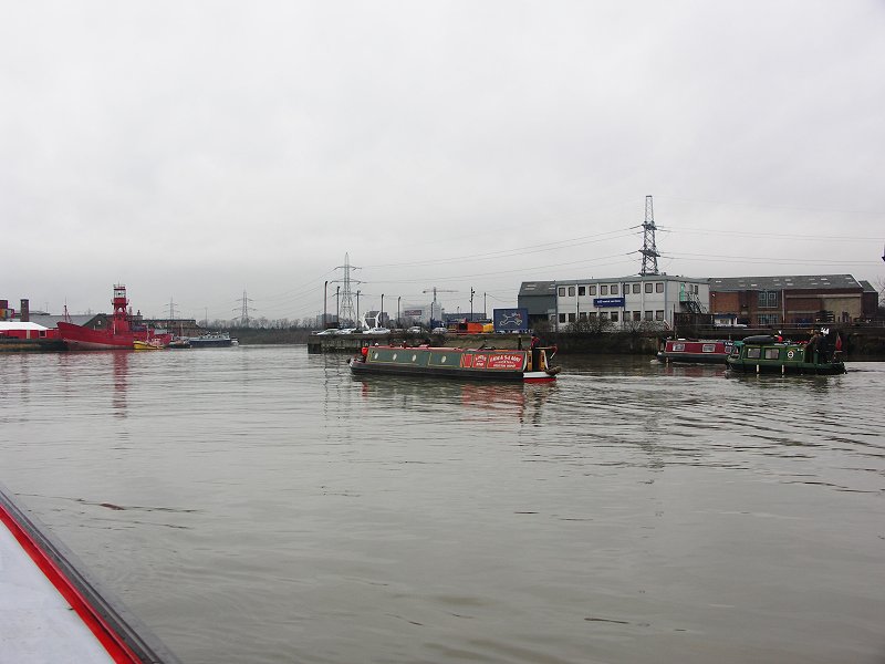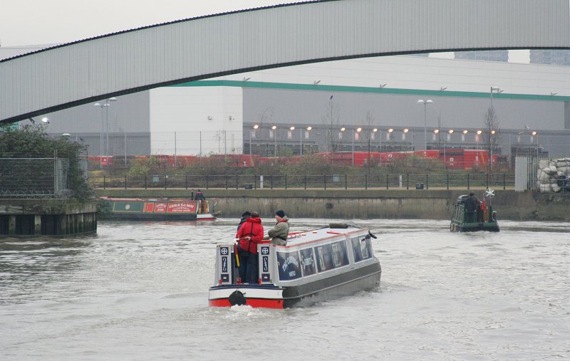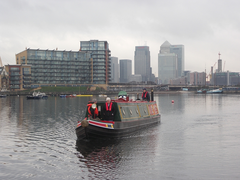 Neil and Peter Wright arrived early at Victoria Dock. Neil changed the fuel filters on NB Earnest and Peter did a spot of shopping. Trevor Burridge arrived not long before departure at 13:00. It was an amble through the Docks. We visited the still un-developed Pontoon Dock and managed to do most of King George V Dock, before being recalled by the Harbour Master! All 7 boats rafted up in the small outer section of the lock and awaited the last of the flood tide. Departure was at 14:40, arrived Bow Locks at 14:30. We teamed up with NB Fulbourne again and went to the London Canal Centre visitor mooring (Islington was rather full) via River Lee and Hertford Union. Pub in the evening.