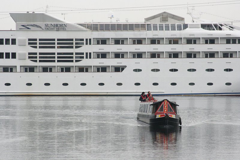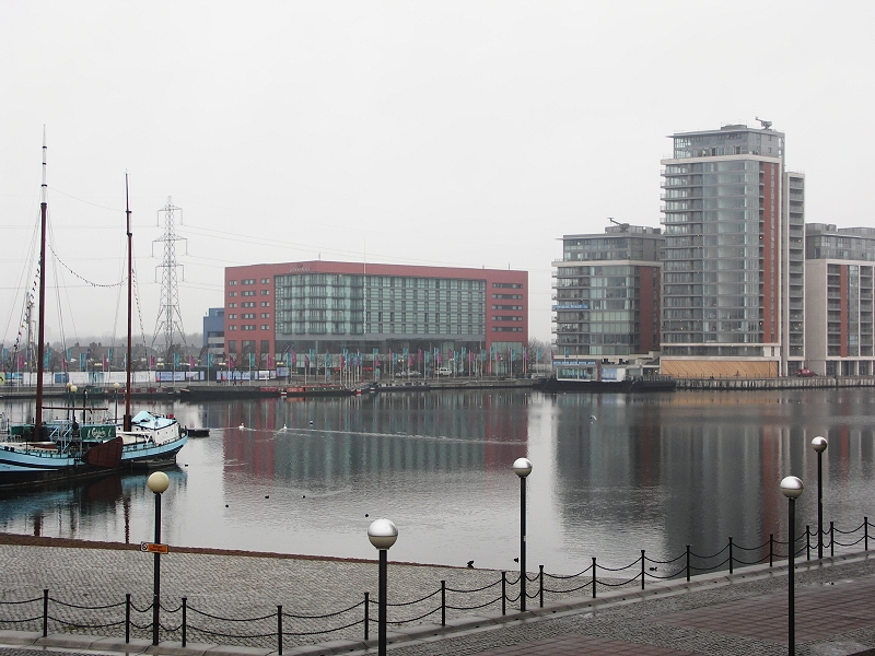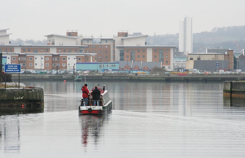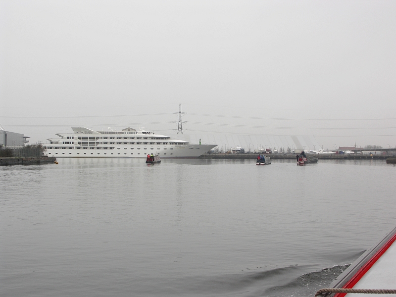 Victoria Dock. The Sunborn Yacht Hotel. NB Earnest has just turned into the