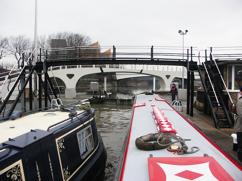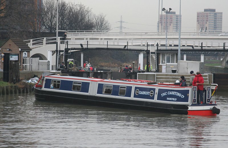 NB Earnest waits for Bow Lock. (Photo Tim Lewis)