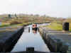 The locks have a pair of bottom gate paddles and a pair of top ground paddles. We found that the quickest and best way to operate the locks going up was to keep Earnest at the back of the chamber (watching the overhanging walkway) and to get both of the two top ground paddles fully up together as the flows were not that turbulent.