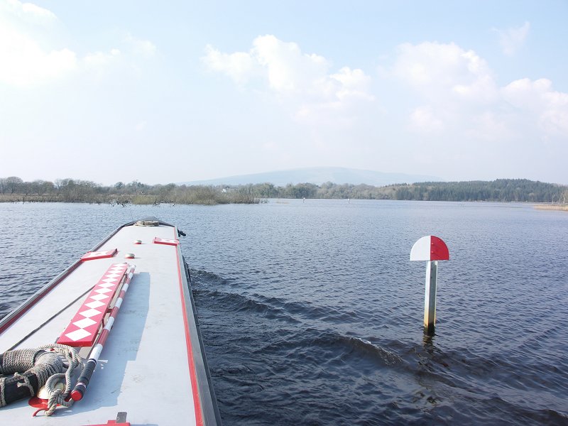 Kiltybardan, St Johns and Muckros Loughs. here the navigator has to follow the course, marked by the Erne style of marker posts, consisting of a semicircular disc on a pole. The inside half of which is white and the outside red.