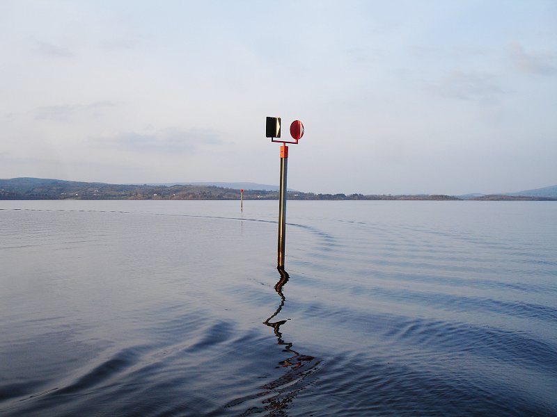 system continues right round the navigable flanks of the lake, the change from port to starboard occurs at the top, where the River Shannon enters the lake. The lake is 8 miles long and 3 miles maximum width. Because of the mountains having a