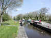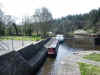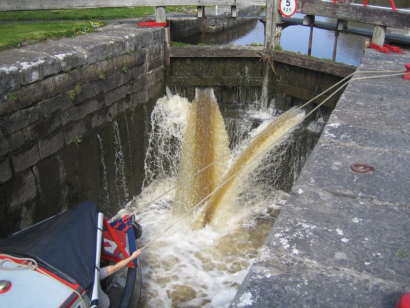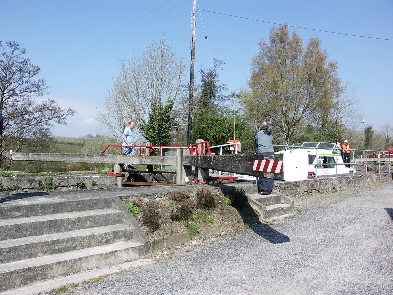 a bit miffed as it was his day off and his stand in should be about. He explained to Neil that there was a self operated CB radio consol near the lock to summon the keeper from one of the other locks. The locky soon arrived in his car, being in transit between the locks. Following lunch hour and other delays we eventually got locked up. The locky was rather flustered, seeing as he had to juggle water (Lough Allen was well below the summit pound of the canal and the back pumping was not on) and he was the only person on for the three locks.