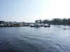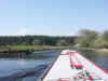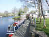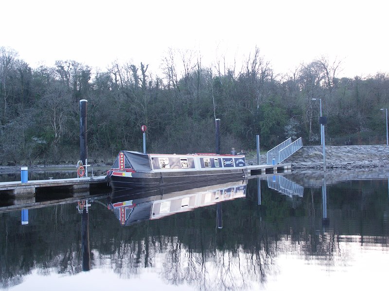 round the corner the visitor mooring pontoon came into view and we could see that the steel cruiser that had taken the direct route up the lake was in residence. After a rather tight wind (we ended up pulling the bow round on the