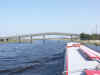 The entrance of the Shannon was marked by two "End Of Navigation" markers, quite close together. We did not assume that this was the deepest channel to explore further on, so Neil got on the roof with the long "depth