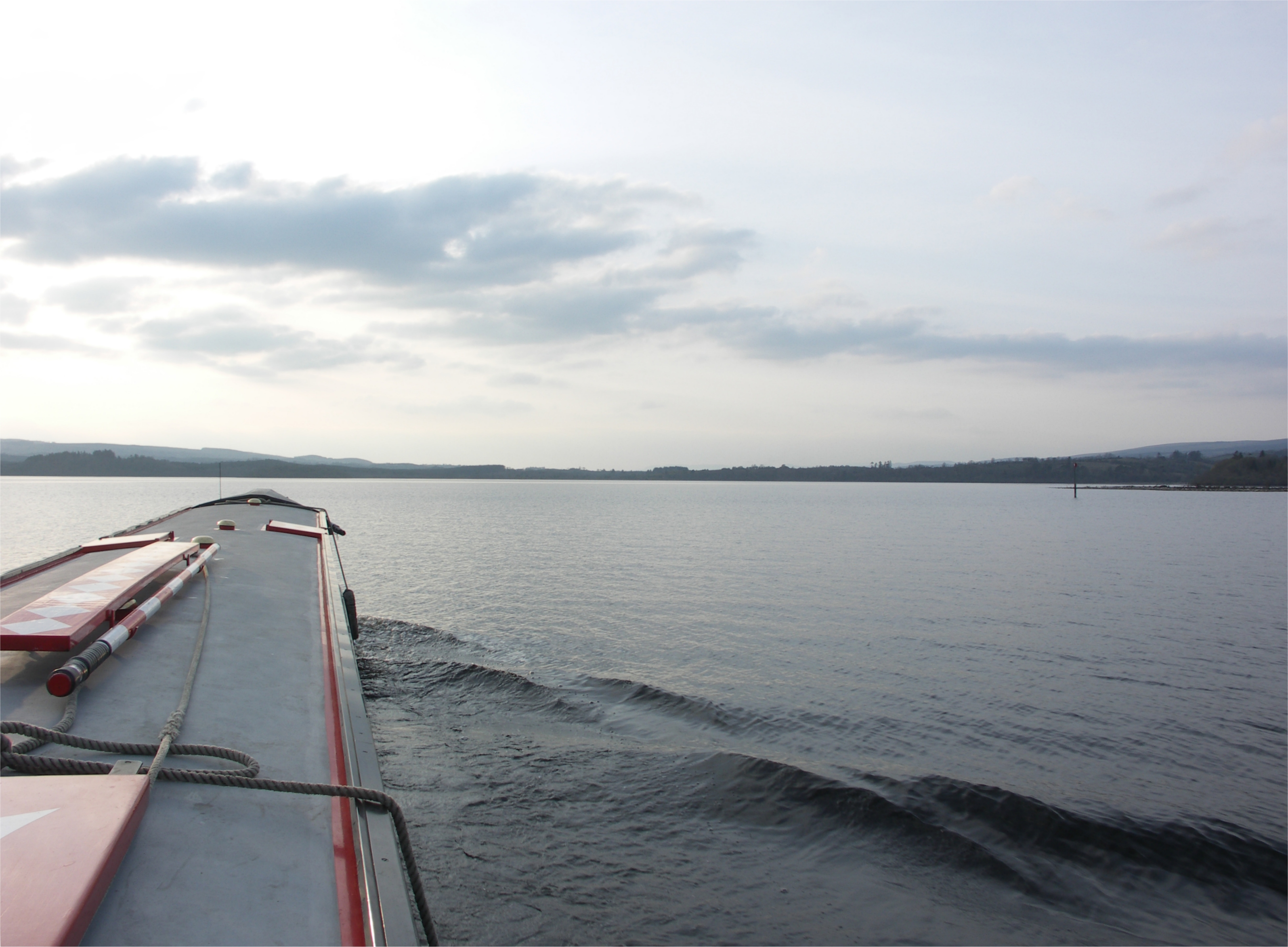 Leaving Dromod, we pass across Lough Bolfin. Shannon Navigation.
