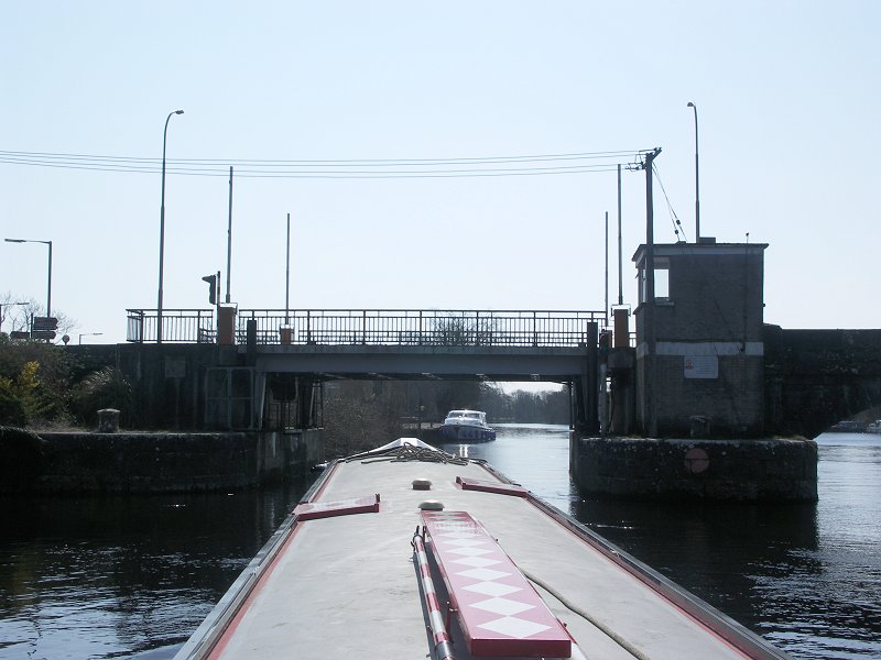 continuing up to Dromod Harbour, or then to the south, to exit the lough. The mid stream waiting pontoon for the lifting section of Roosky Bridge was soon upon us, but we would fit without it being lifted, unlike this joker!