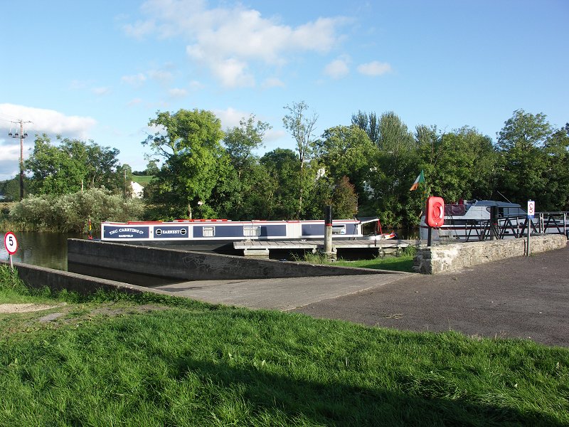 stop, passing it at 12:05. We had no need of shopping, so went passed the Edenderry Arm at 14:20. We made Lock No 19 at Lowtown at 18:15, being locked through by the vigilant James Conroy. We stopped for the night at the visitor mooring in Robertstown, just before Binn's Bridge at 18:30. Neil checked out the Chinese takeaway, which was believed to be in the village. It was open so we availed ourselves of a supposedly small meal...of course it ended up too large! Later some Chinese