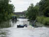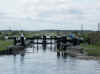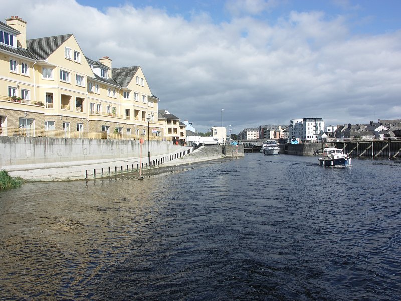 Athlone Lock. The downstream waiting jetty is under water. River Shannon