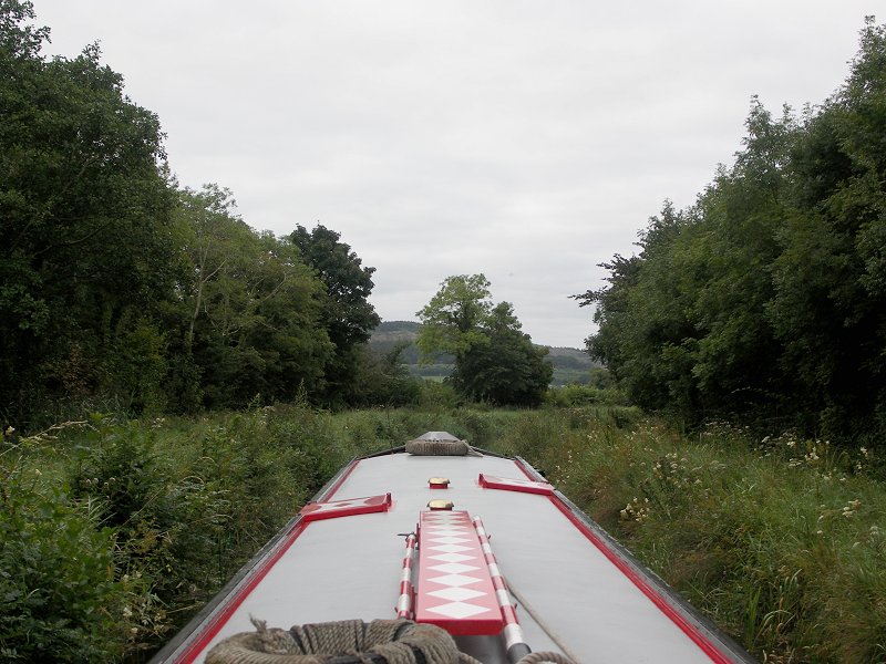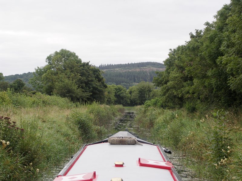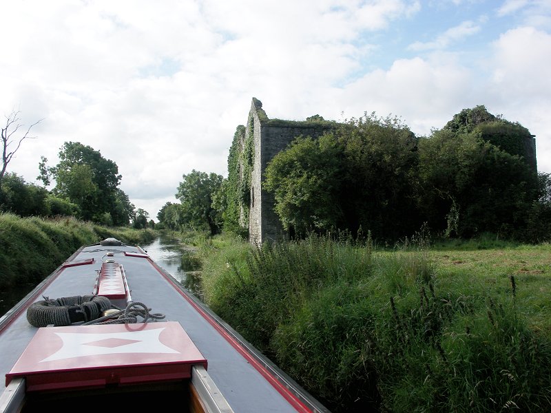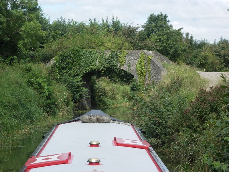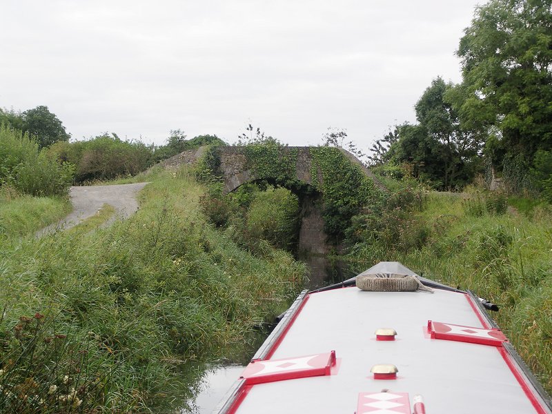 Passage was slow but steady, the width of the canal being similar to, say the Wendover Arm of the Grand Union. The first bridge encountered at 08:05 was the rickety footbridge, not marked in the Grand Canal Guide. This was where the feeder curves round a farmstead. 08:25 saw us pass under the high stone arched Pim Bridge, the towpath changing to the west bank. The Hill of Allen could now be seen