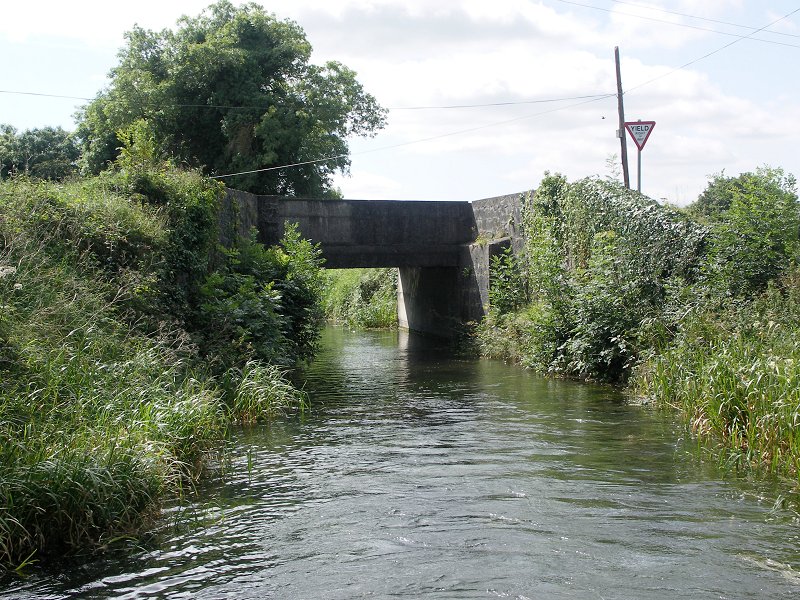 primitive weir into a tributary stream feeding the River Slate and eventually the River Barrow. Beyond here the flow became greater, which seemed to keep the quantity of weed down. The next bridge, Milltown, was a high stone affair, passed at