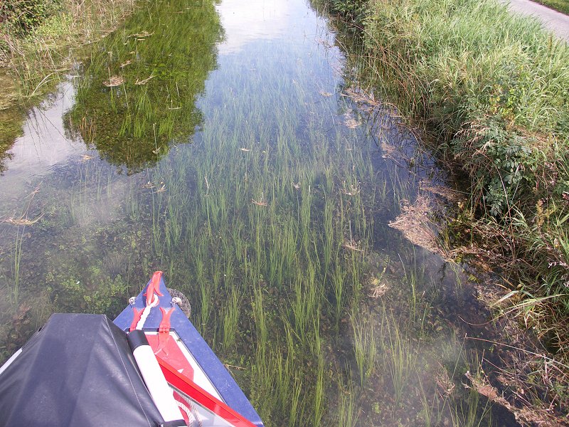 hundred yards and Earnest began to struggle as the weed type changed and became thicker, with no obvious cut course across. So we ploughed on, having to stop a good few times to use reverse to throw off the weed, but still no trip down the
